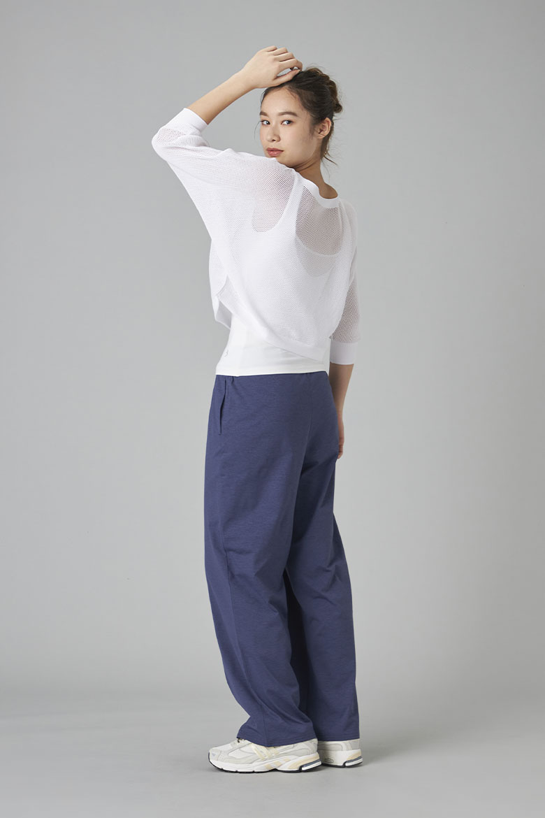【ノーソイングニット】7分袖メッシュニットTシャツ:MEasyCare+ストレートパンツ:MMotion ブラトップロング:M