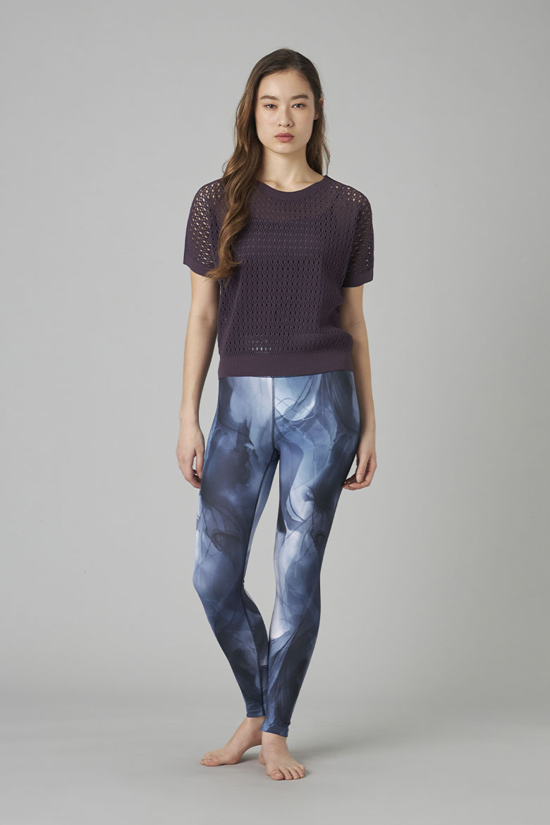 【ノーソイングニット】メッシュニットワンピース:Mインクアートプリントレギンス:MZEN ブラトップロング:M