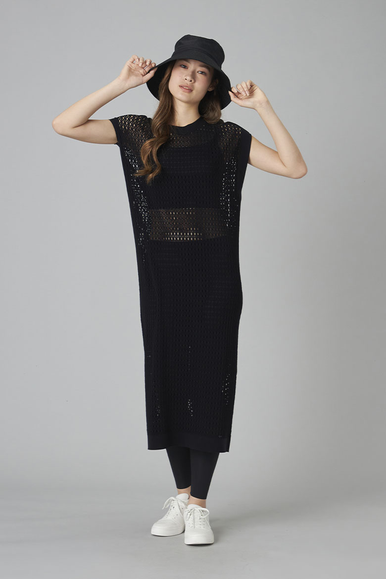 【ノーソイングニット】メッシュニットワンピース