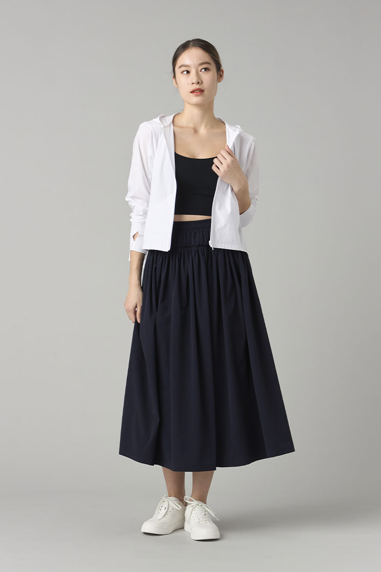 UVケアタフタジップジャケット:MUVケアタフタギャザースカート:MMotion ブラトップロング:M