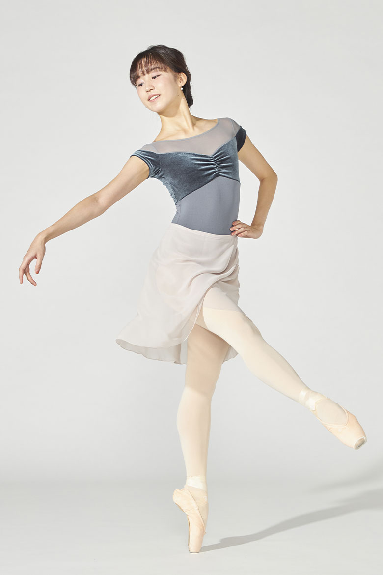 たっぷりのフレア、フリルやリボンなど、バレエモチーフを連想させるデザイン。 ニュアンスカラーをベースにまとめた、やわらかな印象のスタイルです。