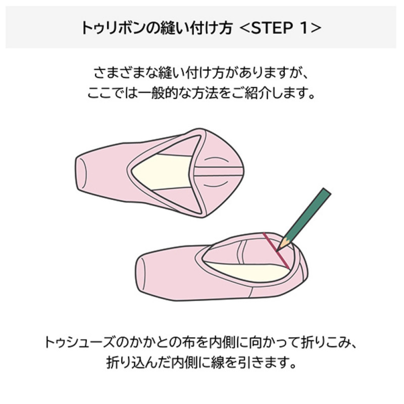 ●製法上、ソール及びインソールは釘が打たれています。弊社にて検品を実施しておりますが、ご使用前に釘が突出していないか確認の上ご使用ください。釘が抜けてもトゥシューズの成形に問題はありませんが、はき心地がかわる場合があります。