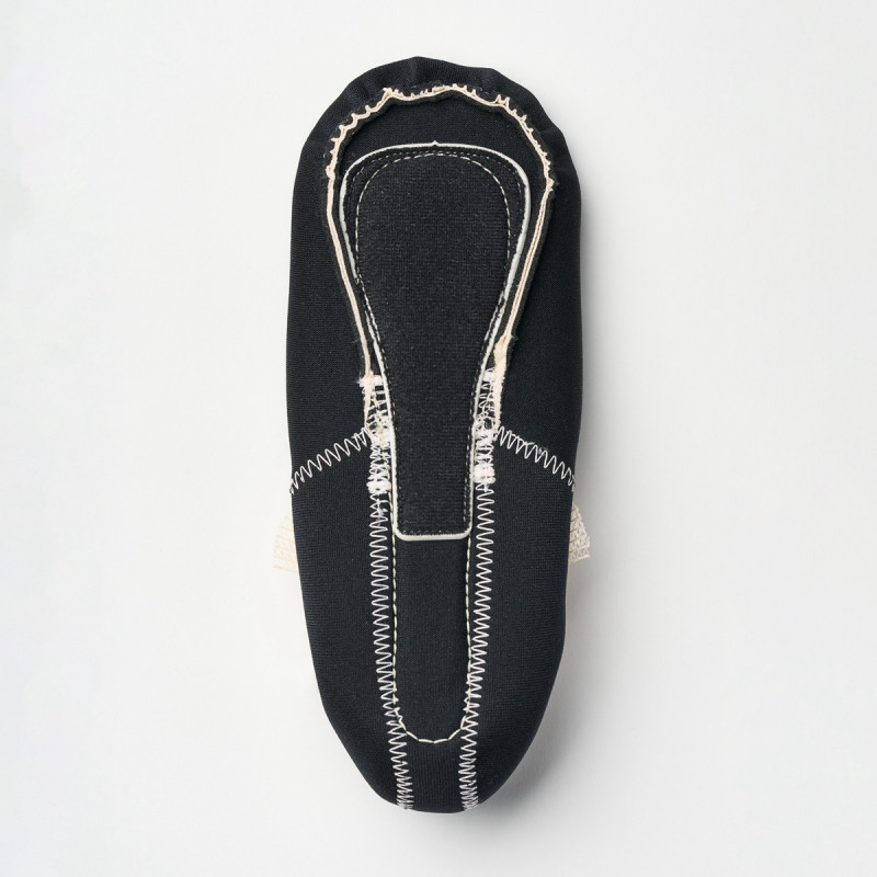 表地2枚+裏地1枚の3層仕立て。伸縮性のある生地とクッション材(ウレタン)を組み合わせ、足にやさしくフィットしながらシワの出ない美しいラインを叶えました。