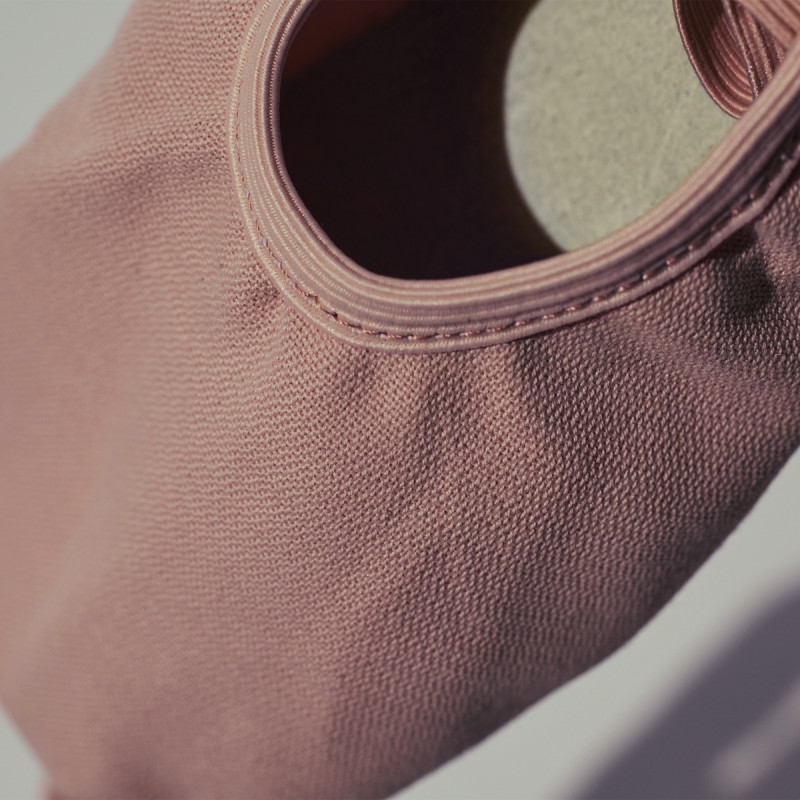 ●従来の引きゴムデザインでは足の形によっては余りが目立つことがありましたが、縁ゴム巻きデザインにすることで生地を均等に分散させ足先をきれいに見せます。