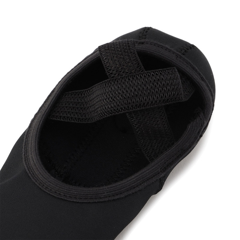 従来のバレエシューズと違い、木型を使わない独自製法により、プリーツが足裏にあたらずよりフラットに。ギャザー部分を足裏に収める設計で、どの角度から見てもシワのない美しいつま先を実現。