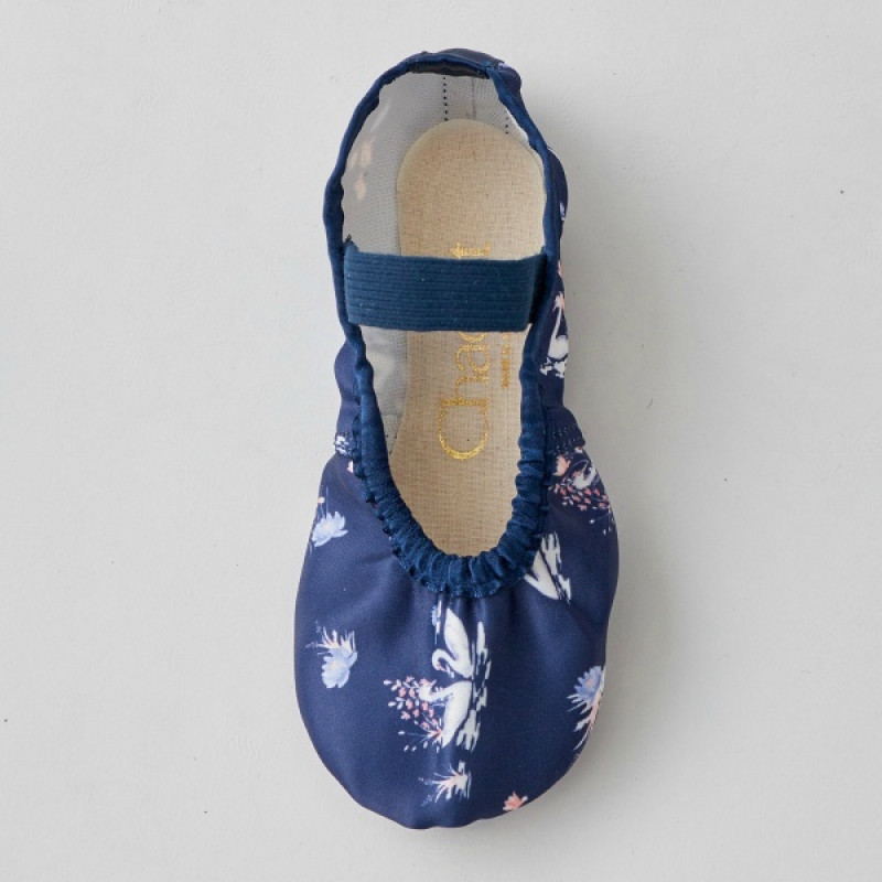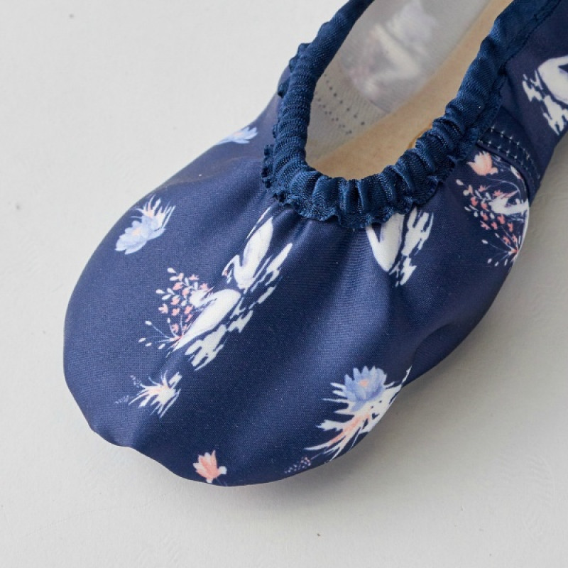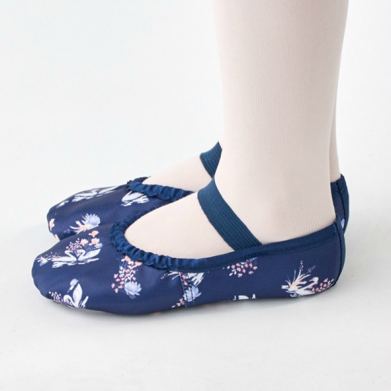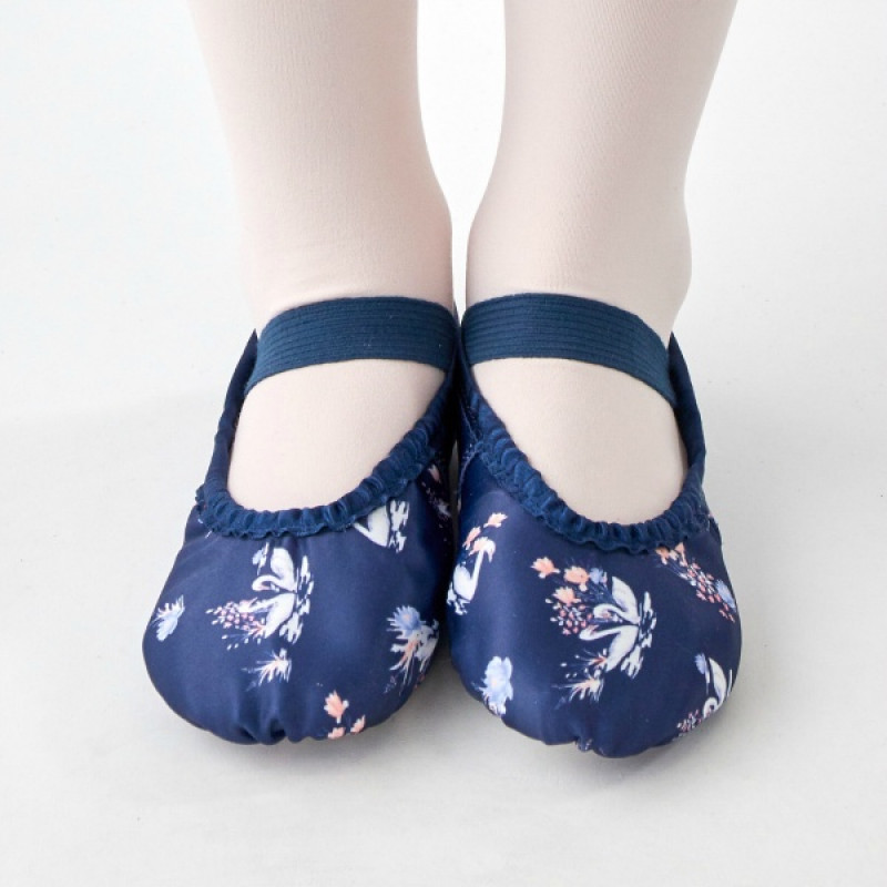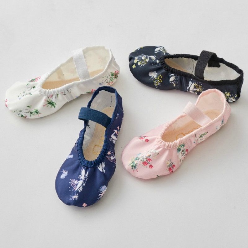 ●サテン地に白鳥柄のプリントを施した子どもバレエシューズのNewモデル提案。