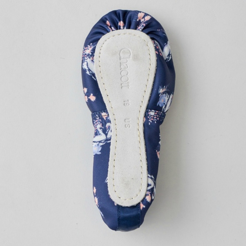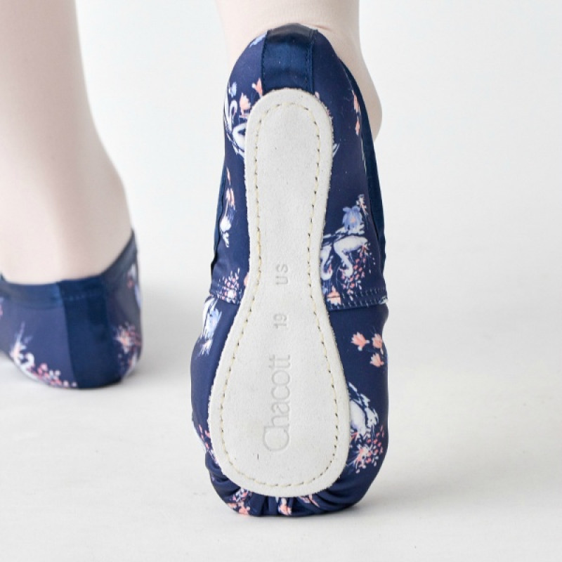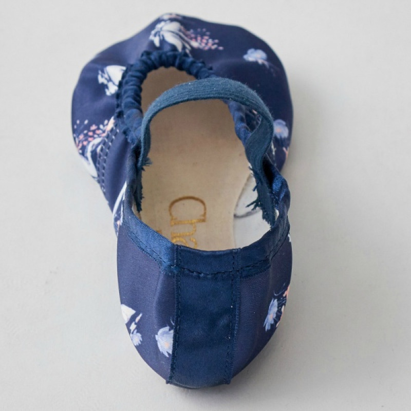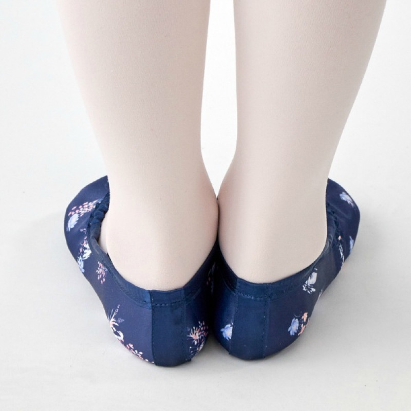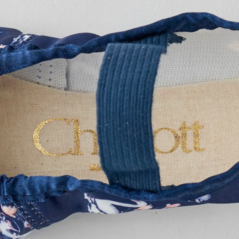 ●サテン地に白鳥柄のプリントを施した子どもバレエシューズのNewモデル提案。