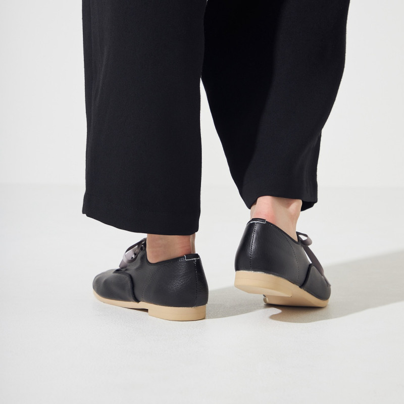 ●靴紐には結びやすくてほどけにくい、少し肉厚でやわらかなリボンを採用。