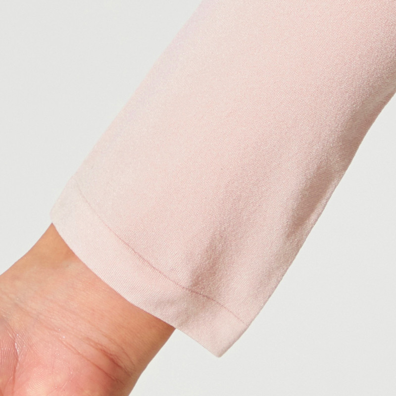 ●吸放湿性の高い(従来品比較)新素材を使用した丸編のニットトップス。