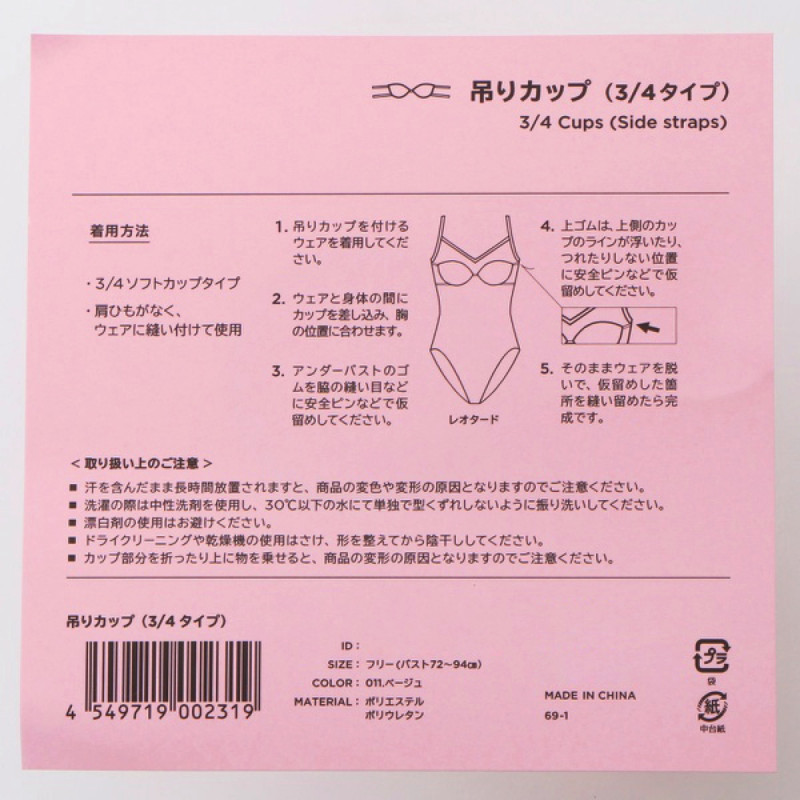 ●吊りカップの位置が、ブラジャーに近い位置で肩ラインにないため、レオタードを着用した際に肩ゴムが出ません。