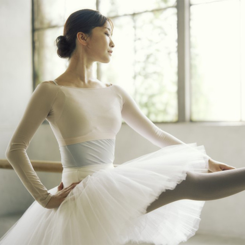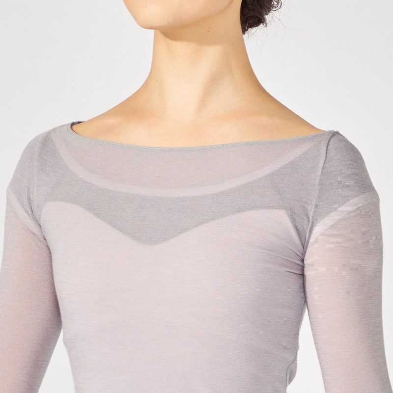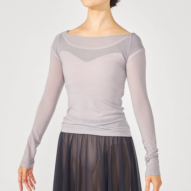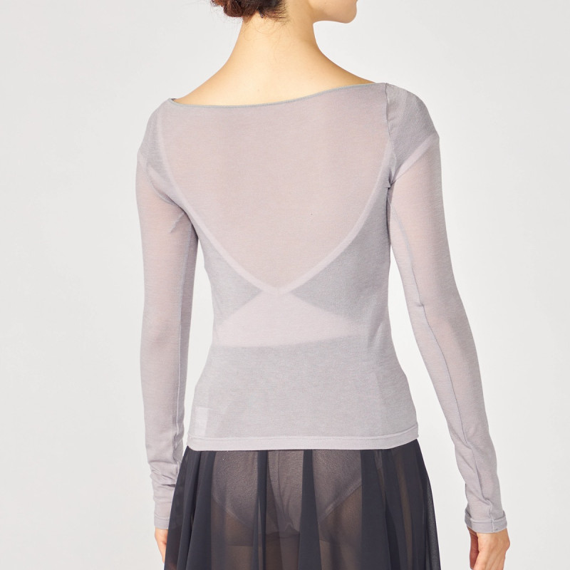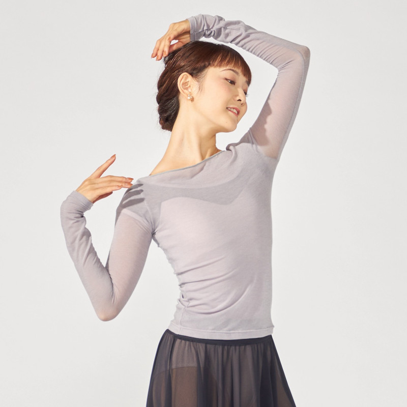 透け感のある薄手の編地でレオタードの色やデザインを生かしてコーディネートできるシンプルトップス