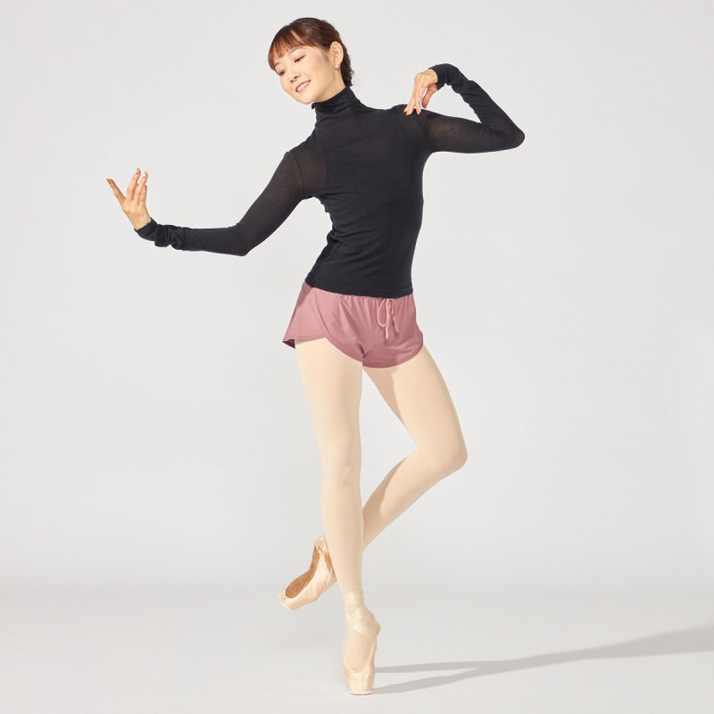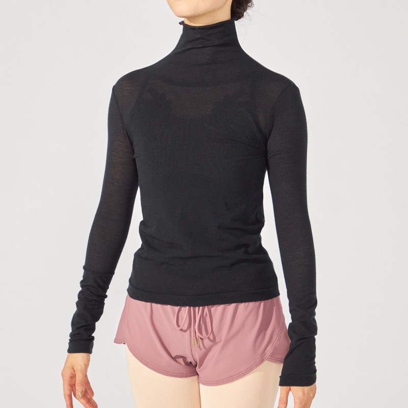 透け感のある薄手の編地でレオタードの色やデザインを生かしてコーディネートできるシンプルトップス