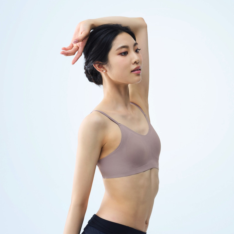 ●バスト部分にモールド加工を施し、体の凹凸に合わせた立体的な形状に。動きやシルエットにフィットします。