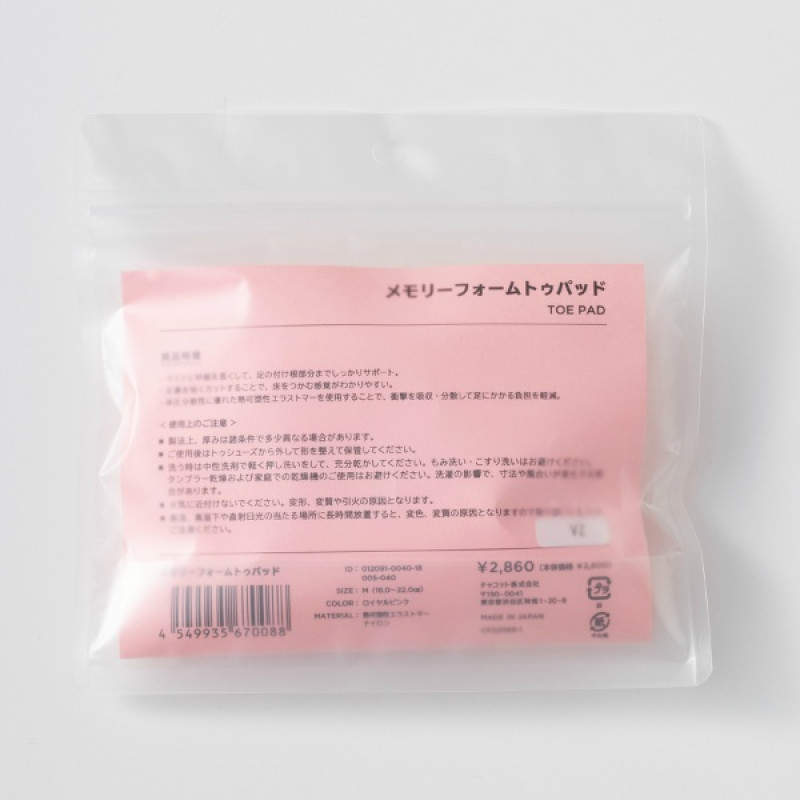 『足先にかかる衝撃を吸収して分散させる低反発トゥパッド』