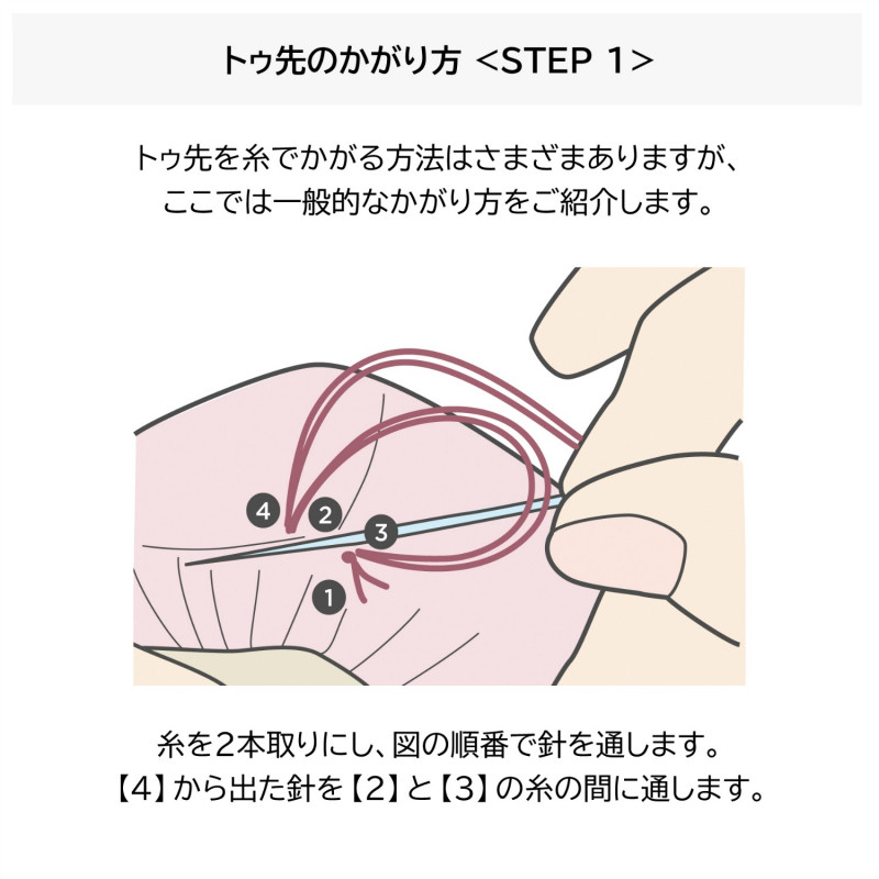 ●トゥシューズのリボン付け、部分かがりなどに適した糸をセットにしました。