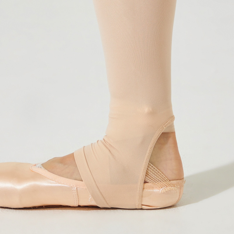 ●穴部分は縫製で適度に伸縮し、トウシューズの上から着用してもストレスのない仕様になっています。