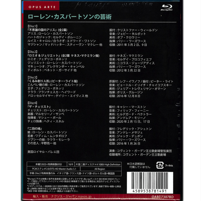 ●このスペシャル・ボックス・セットには、彼女の舞台映像収録から5つの作品が収められています。彼女の名を飛躍的に高めたクリストファー・ウィールドン振付の『不思議の国のアリス』。デイリー・テレグラフ紙で「『アリス』は彼女が演じるために生まれた作品」と絶賛されました。その他、可憐ながら高難度な「こんぺい糖の精」を見事に踊る『くるみ割り人形』、悲劇のヒロインを迫真の演技で描くケネス・マクミラン振付の『ロミオとジュリエット』、コミカルな踊りが愉しいフレデリック・アシュトン振付の名作『二羽の鳩』、ジャクリーヌ・デュ・プレの生涯をバレエで描いて大きな話題となったキャシー・マーストン振付の2020年の新作『ザ・チェリスト』。彼女の素晴らしいダンスをたっぷりとお楽しみいただけるボックス・セットです。