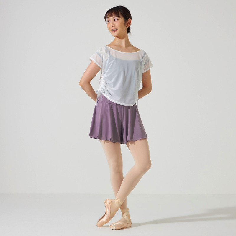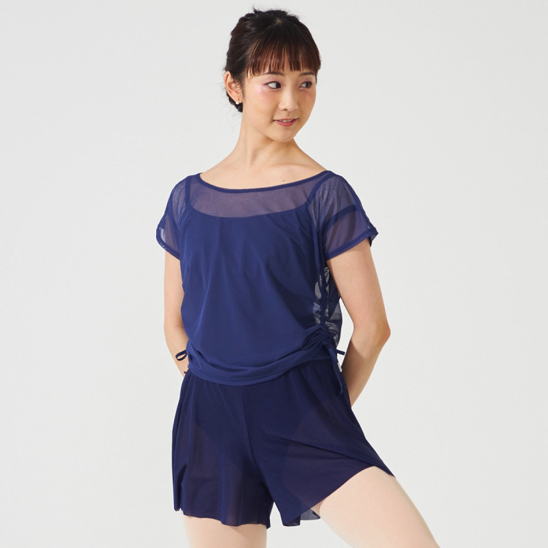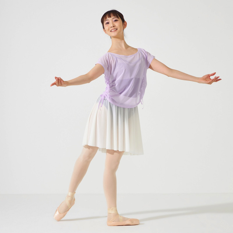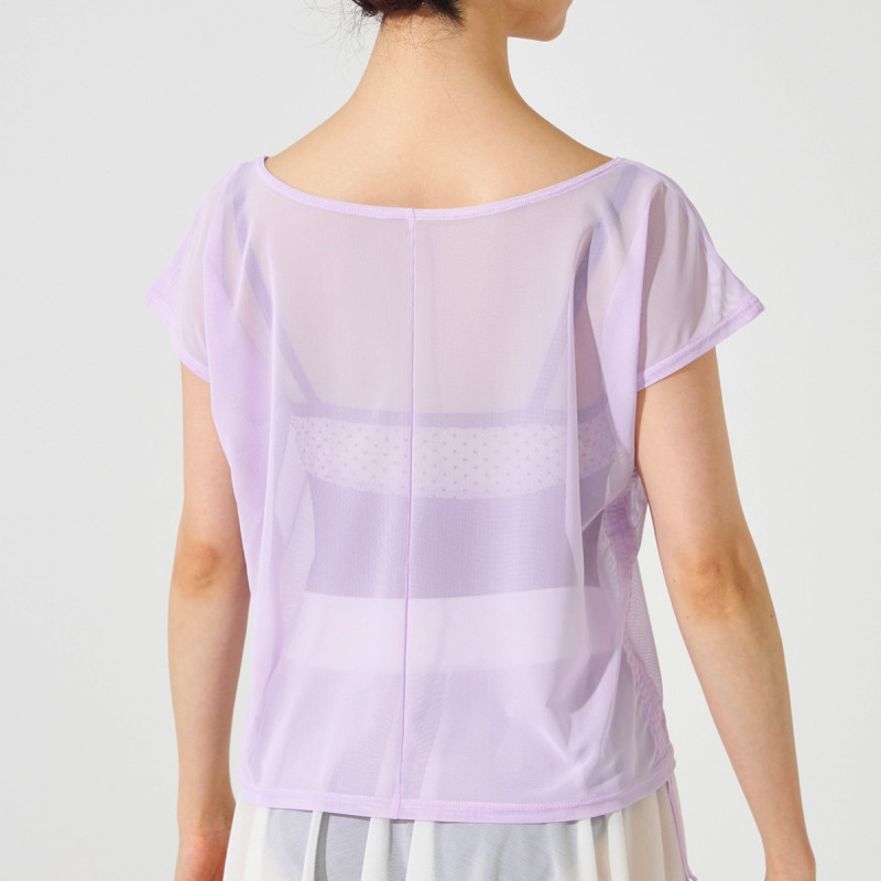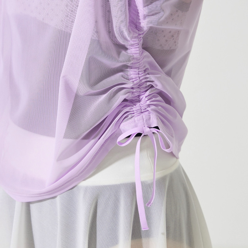 両サイドにドローストリングを入れたコーディネートや体型に合わせて着丈アレンジが楽しめるデザイントップ