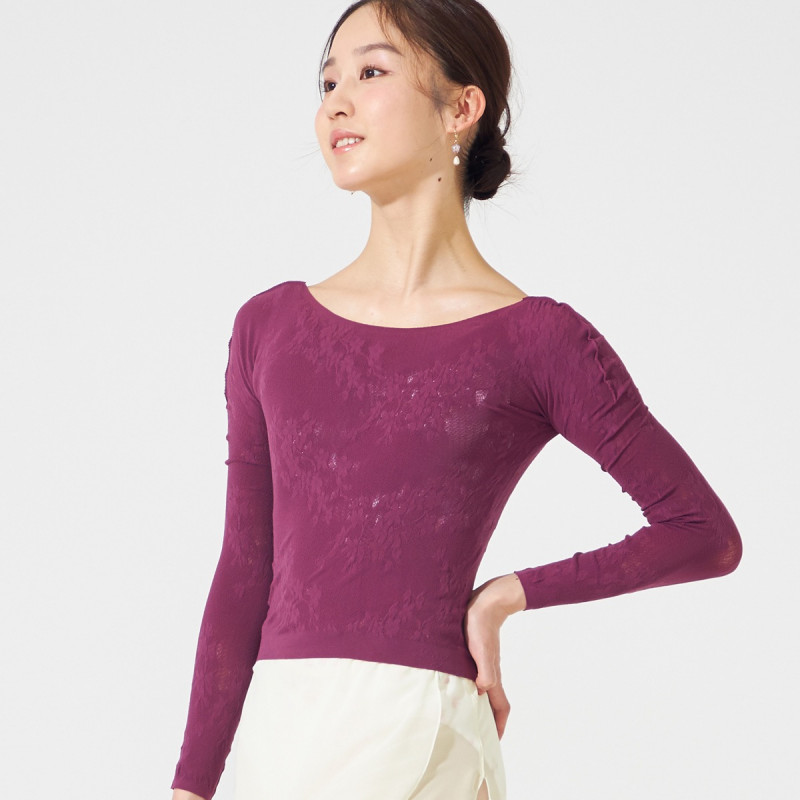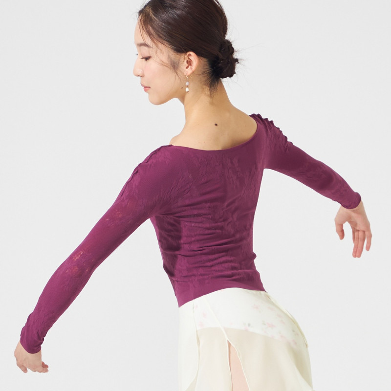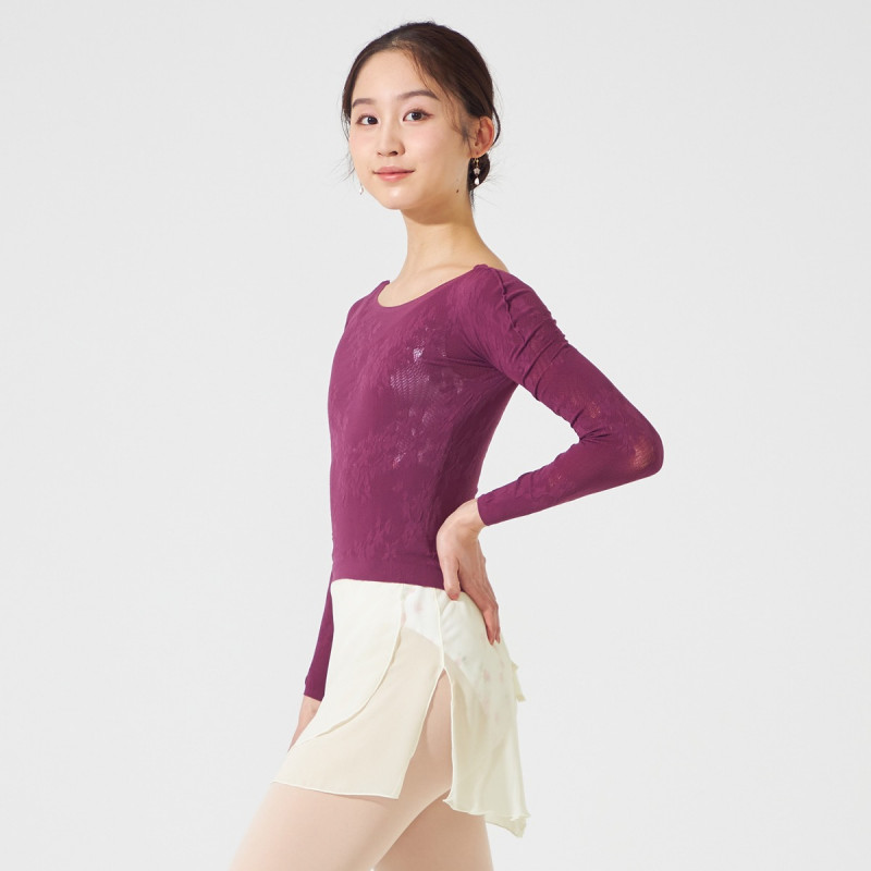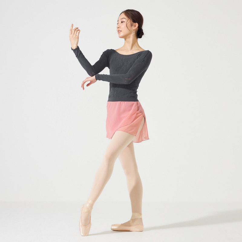 腰にかかる少し短めの丈はショート丈のレッスンボトムスと合わせてもバランスの良い丈感。