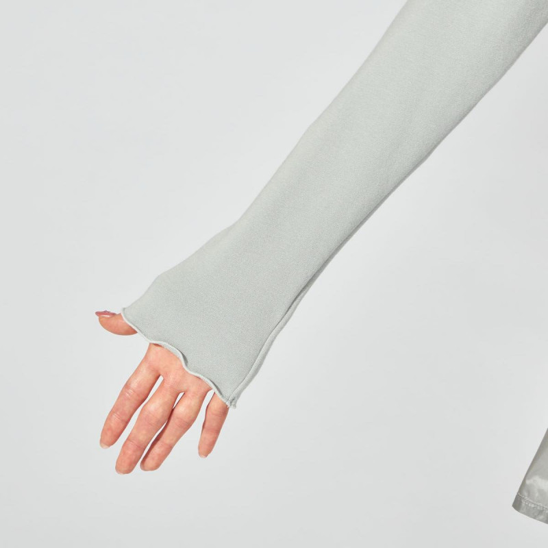 高い伸縮性が特徴のスウェット素材、ハイゲージベア裏毛を使用したアームカバー