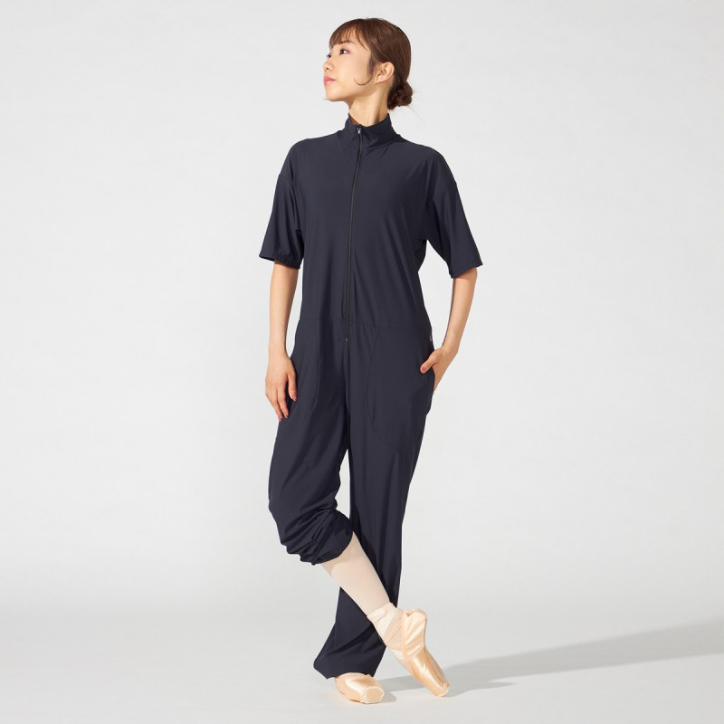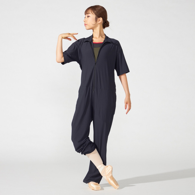ダンサーの間で“ワンジー”と呼ばれるこのつなぎ型アイテムは、円加さんらしいシンプルで潔いカッティングが特徴。
