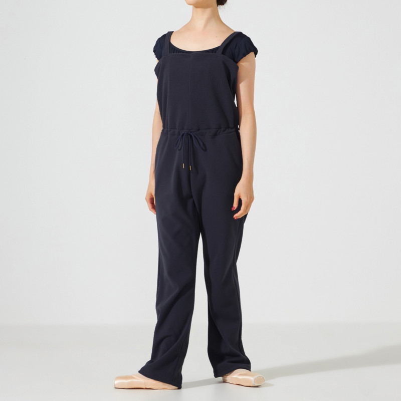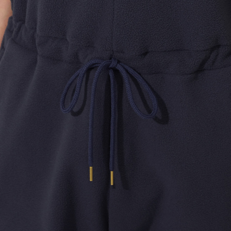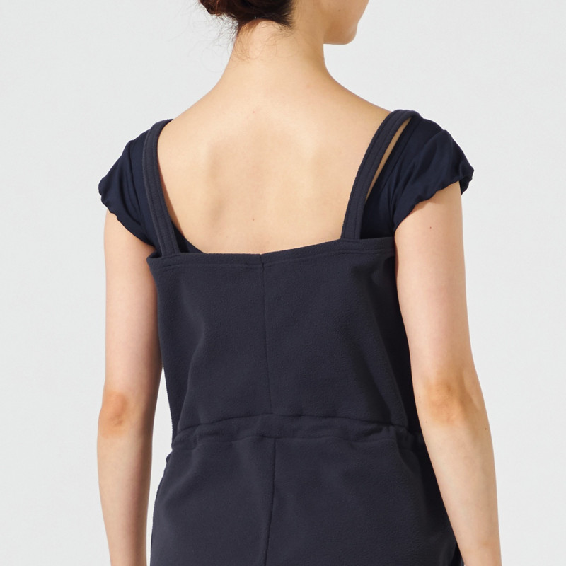ウエストの引き紐を引くことで、トップ部分をウエストまで落としてパンツとして着用可能。