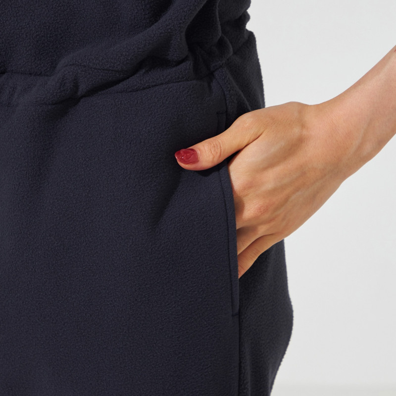 上質なマイクロファイバーを使用した、なめらかな風合いの中肉フリース素材を使用。