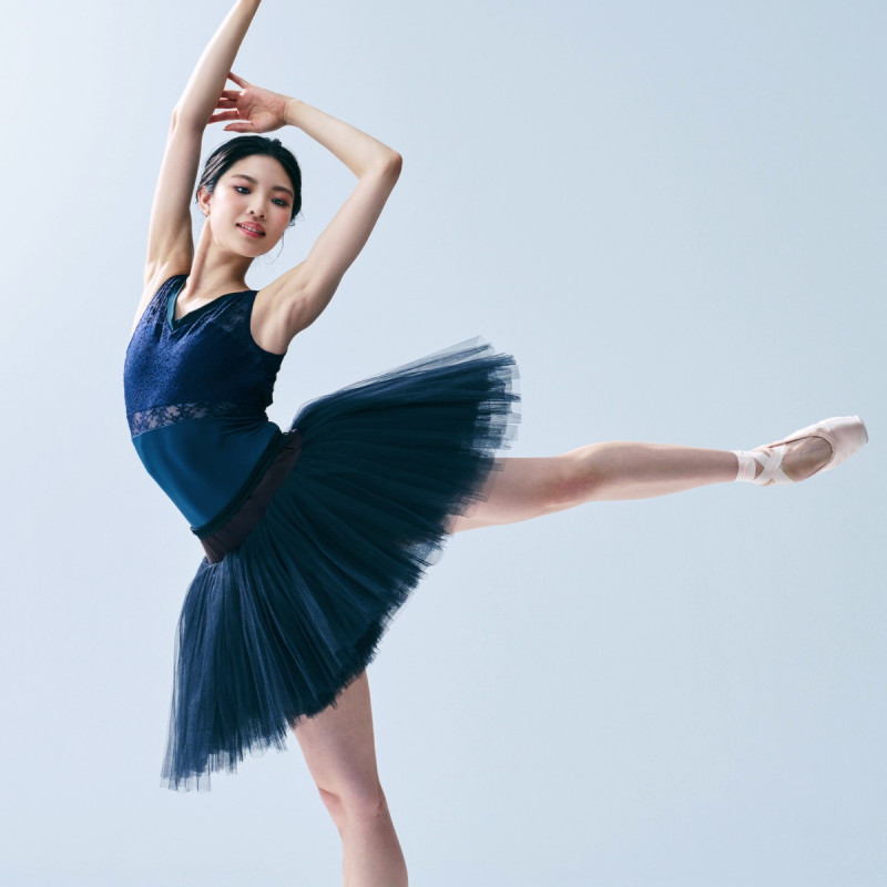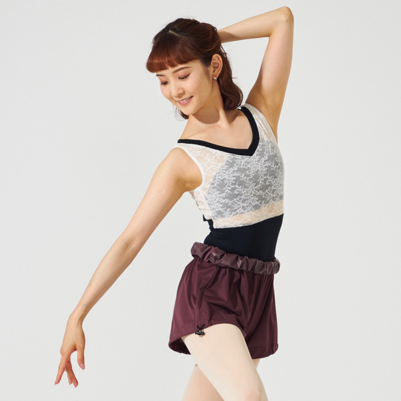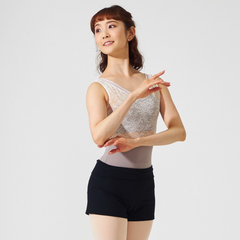 パワー感のあるレースで胸周りはしっかりとサポート。タイツやスカートが重なるウエストから下は、薄手で軽さがありながら生地に膨らみ感があり、滑らかな肌当たりのナイロンベア天竺素材をを使用。