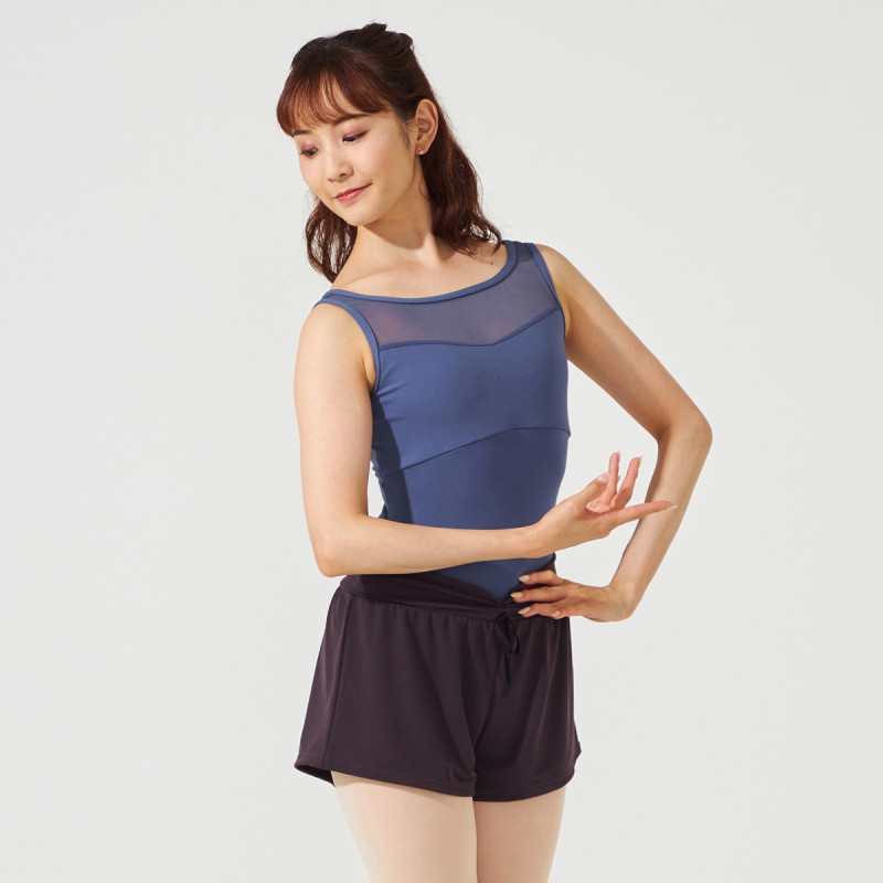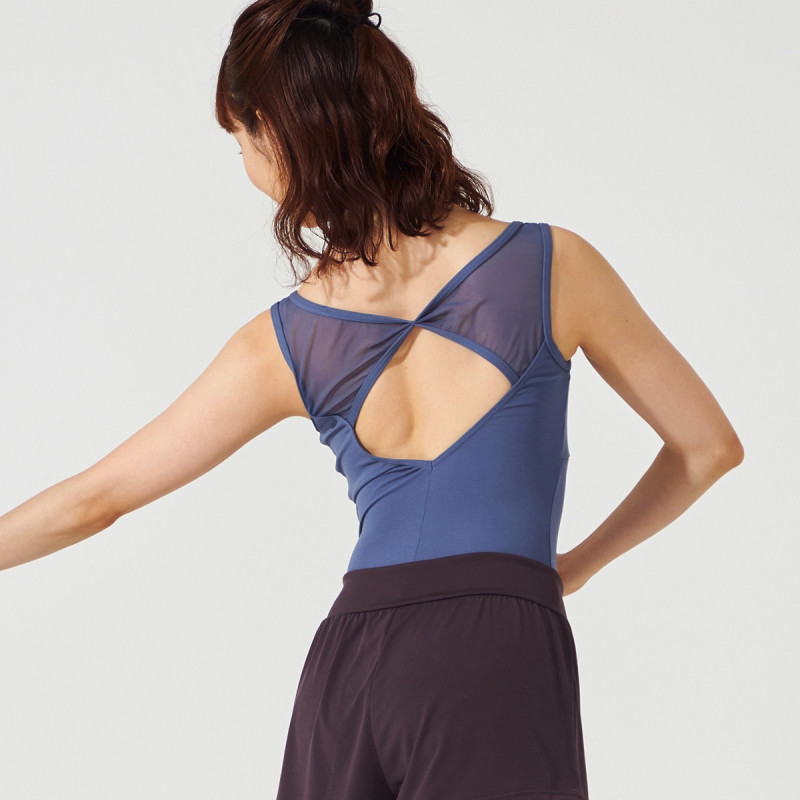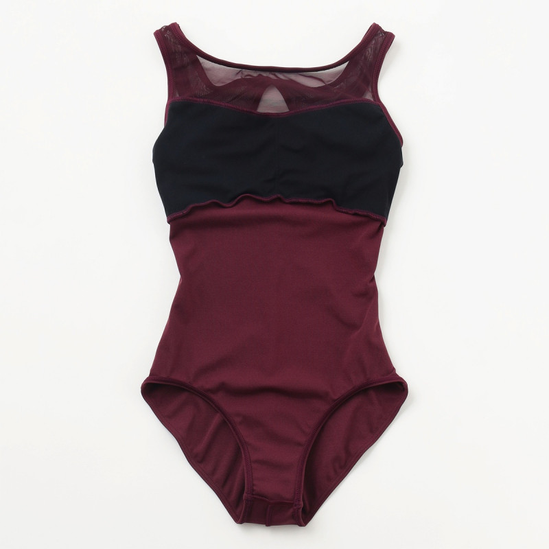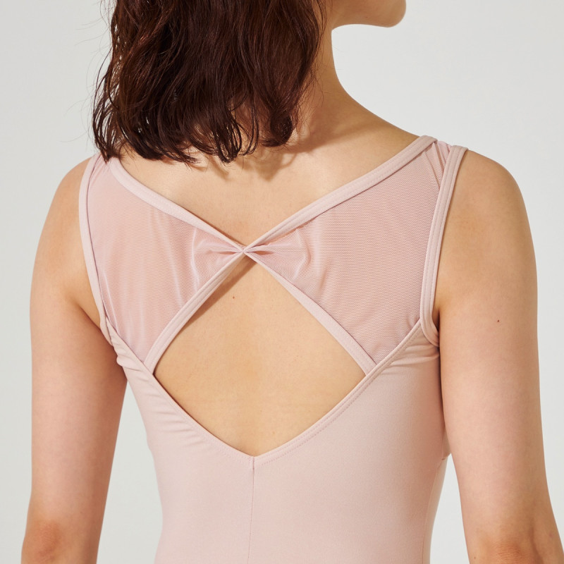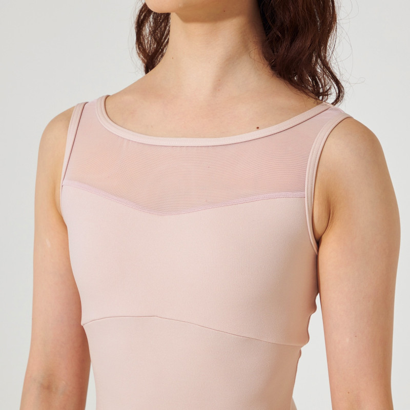 スラッシュネックラインがエレガントなカッティングのノースリーブレオタード
