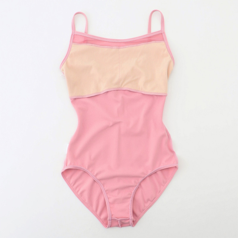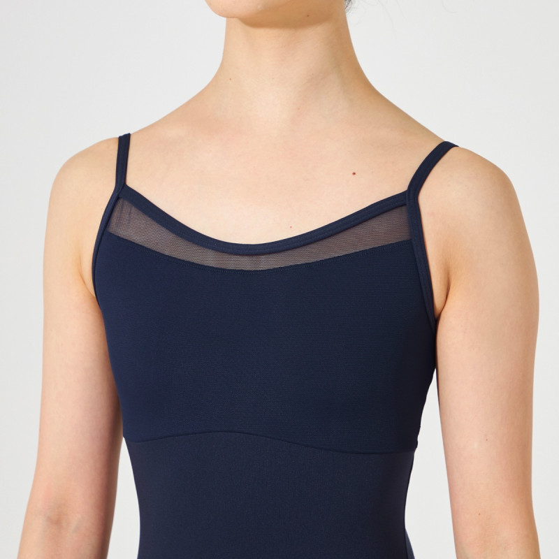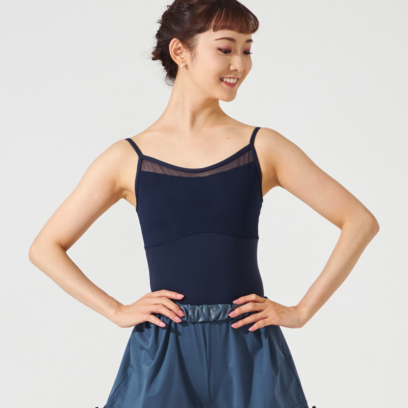 ストレッチチュールを胸元から切り替えたキャミソールレオタード