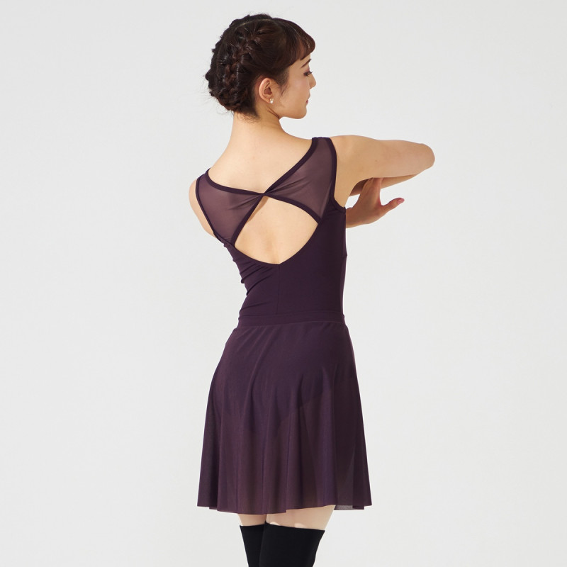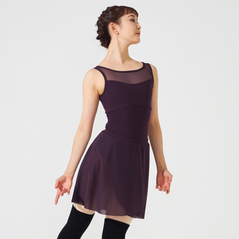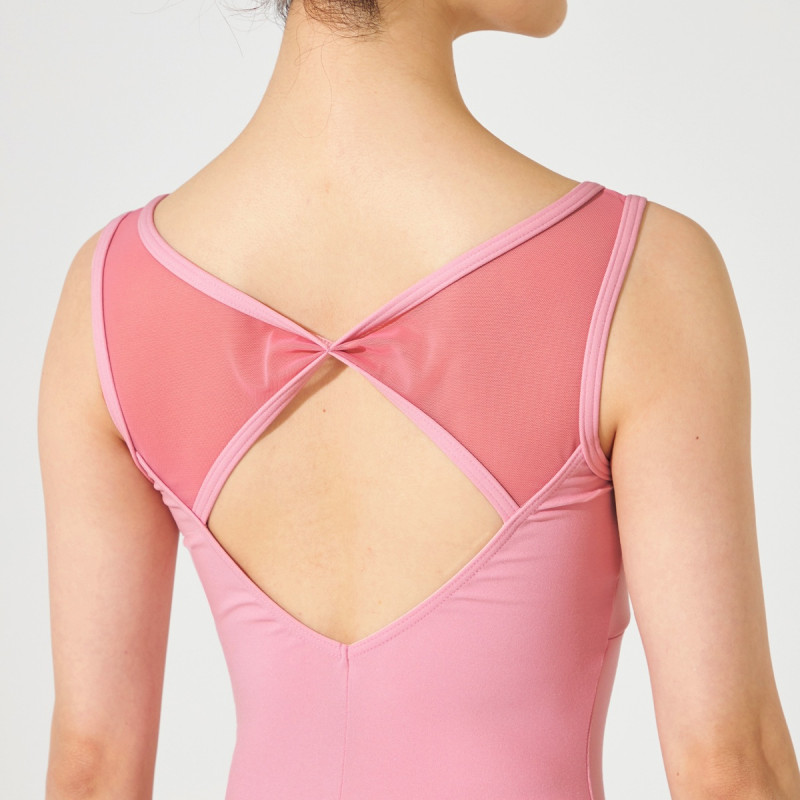 スラッシュネックラインがエレガントなカッティングのノースリーブレオタード
