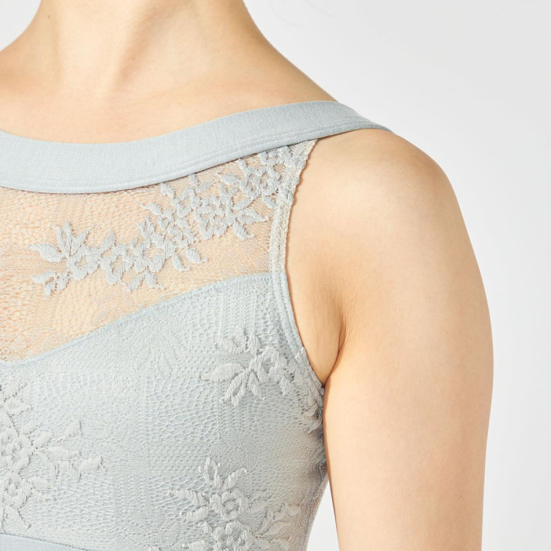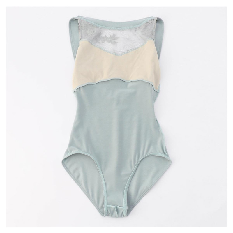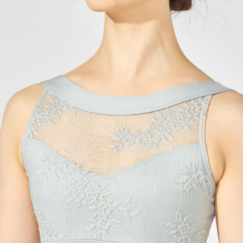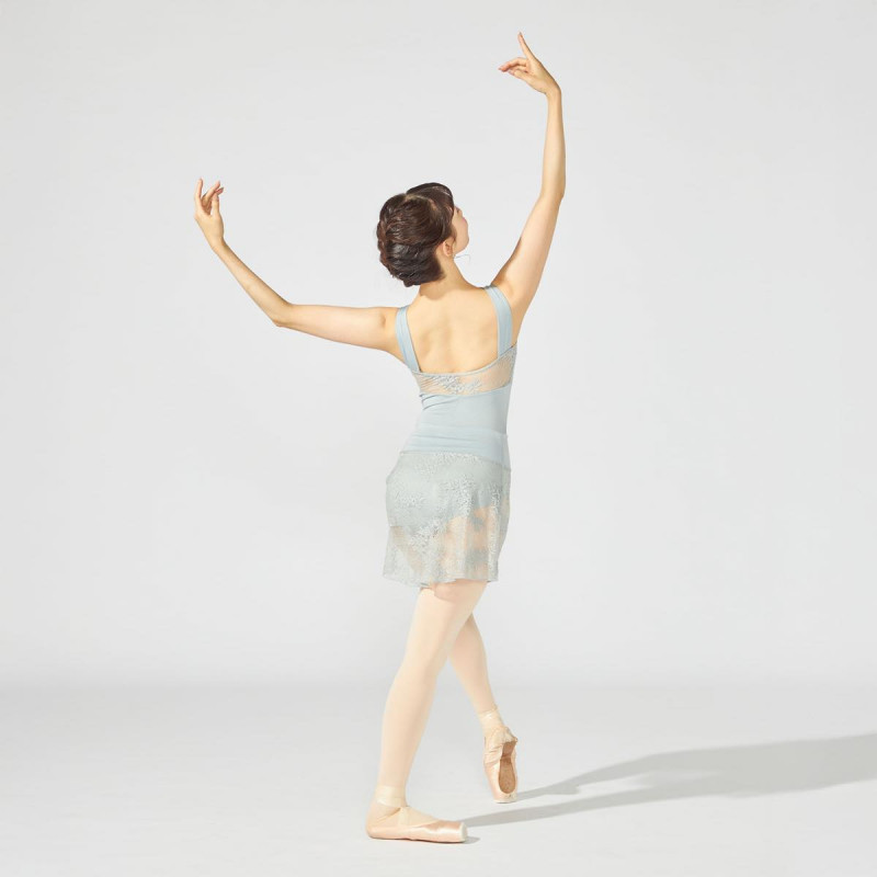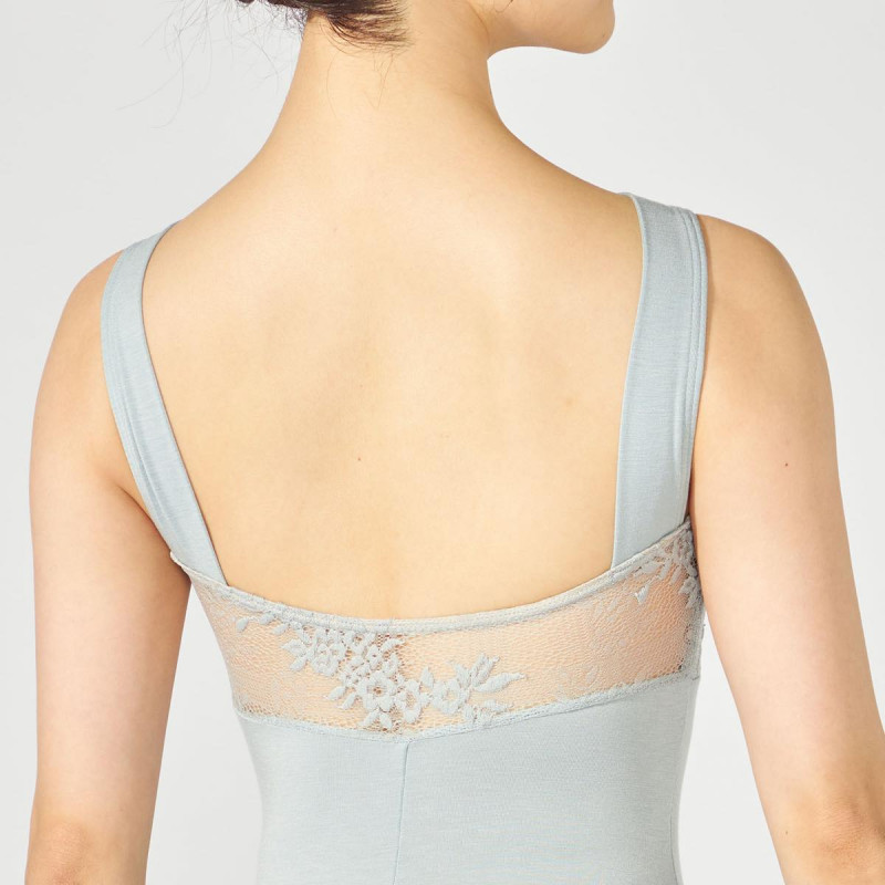 太めのストラップがモダンな印象を与えるノースリーブレオタード