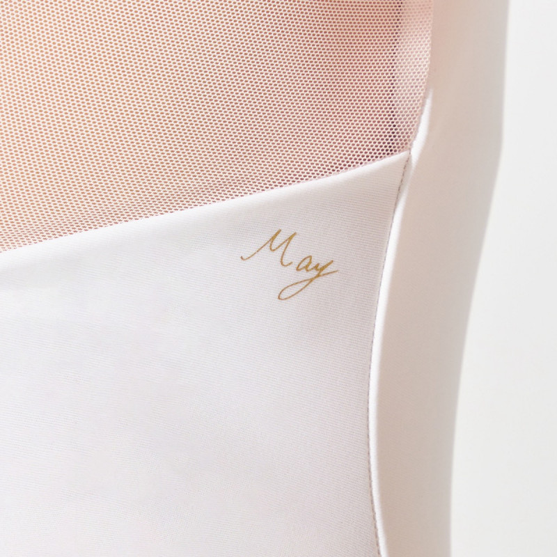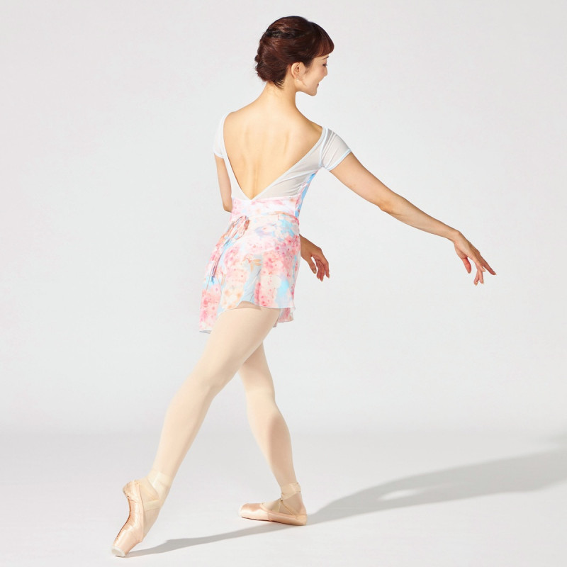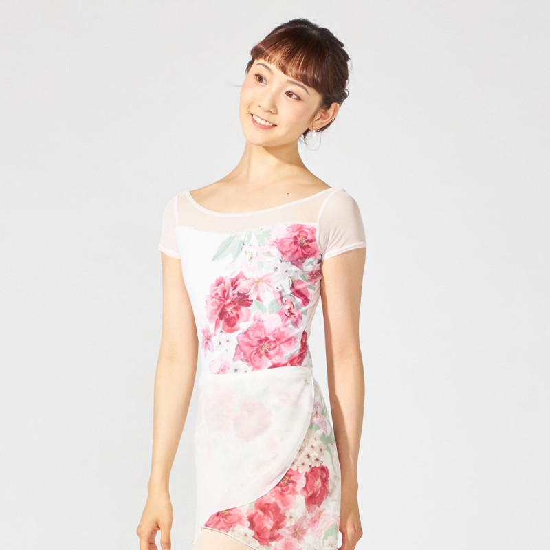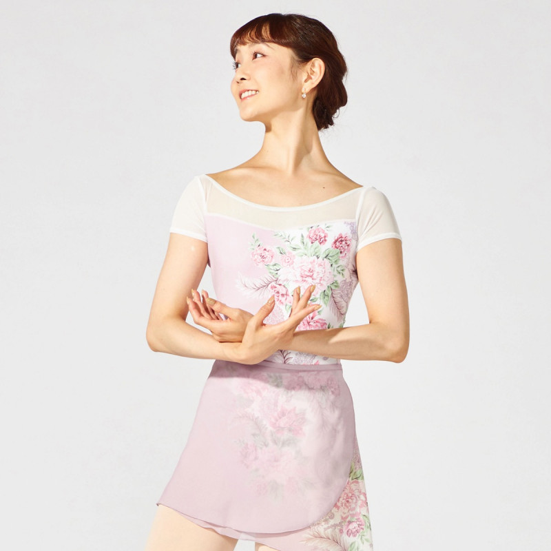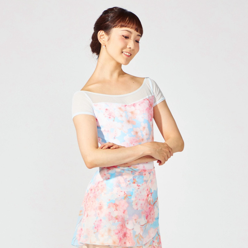 普段ノースリーブのデザインを選ばれることが多いメイさんが、「腕がいちばん美しく見えること」にこだわって袖丈を決めたキャップスリーブレオタード