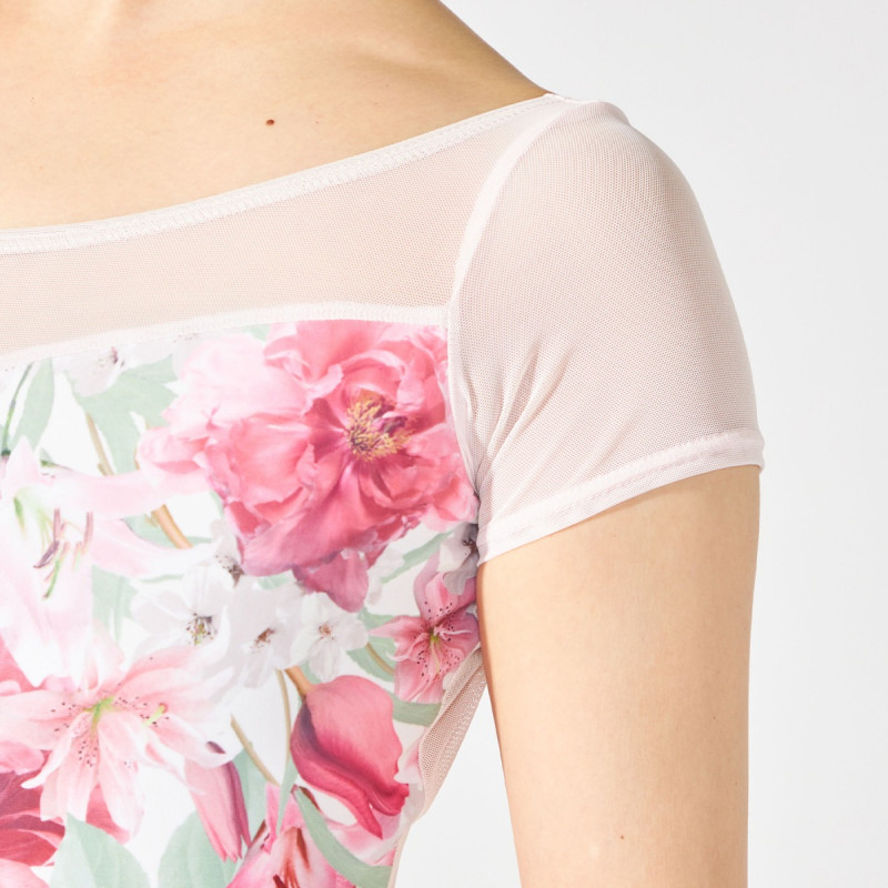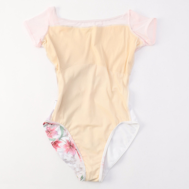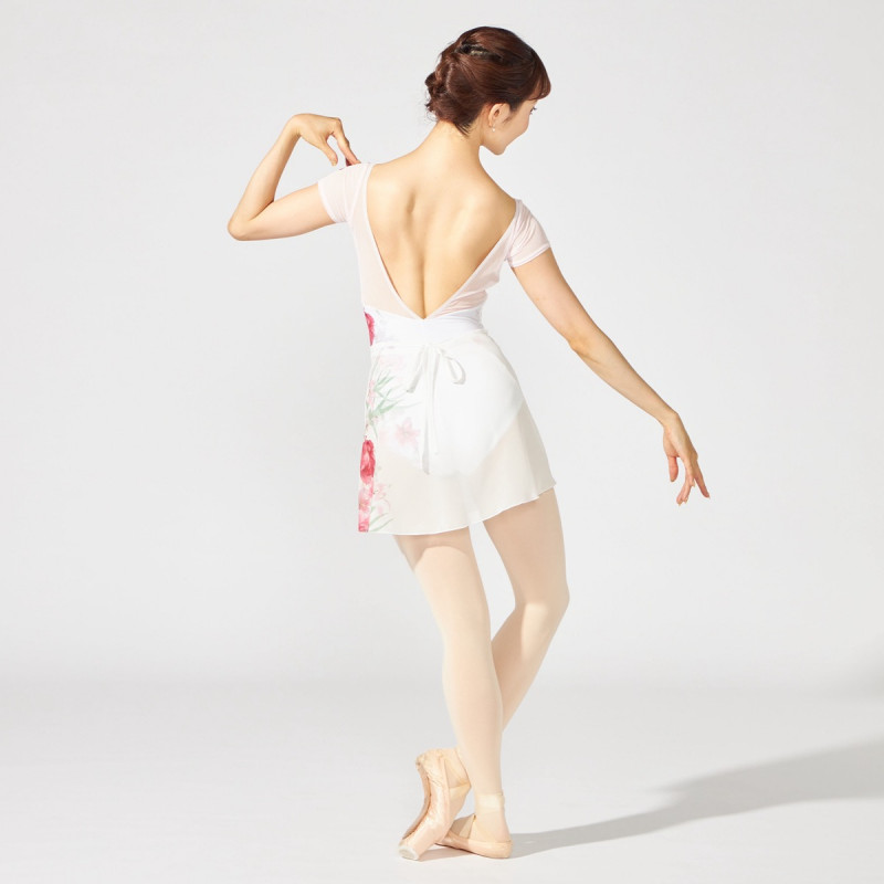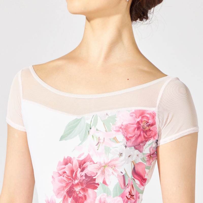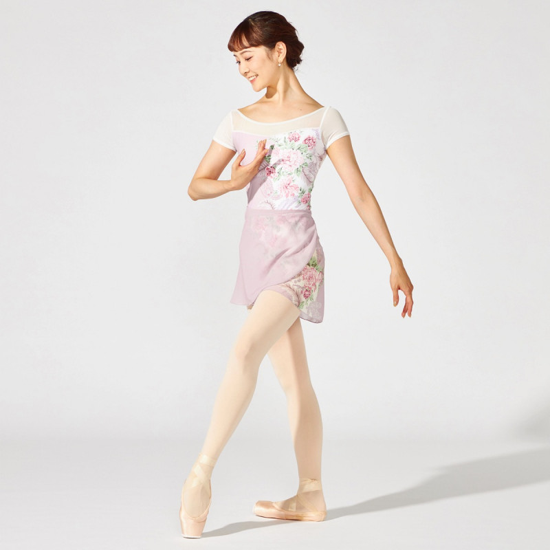 普段ノースリーブのデザインを選ばれることが多いメイさんが、「腕がいちばん美しく見えること」にこだわって袖丈を決めたキャップスリーブレオタード