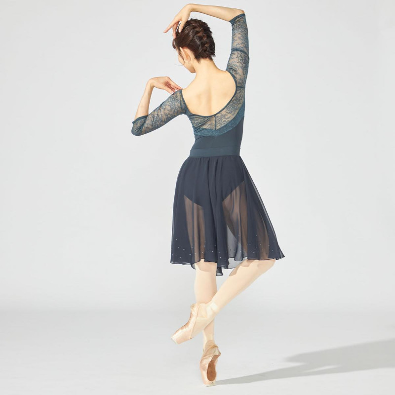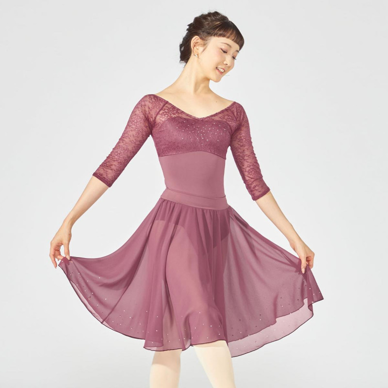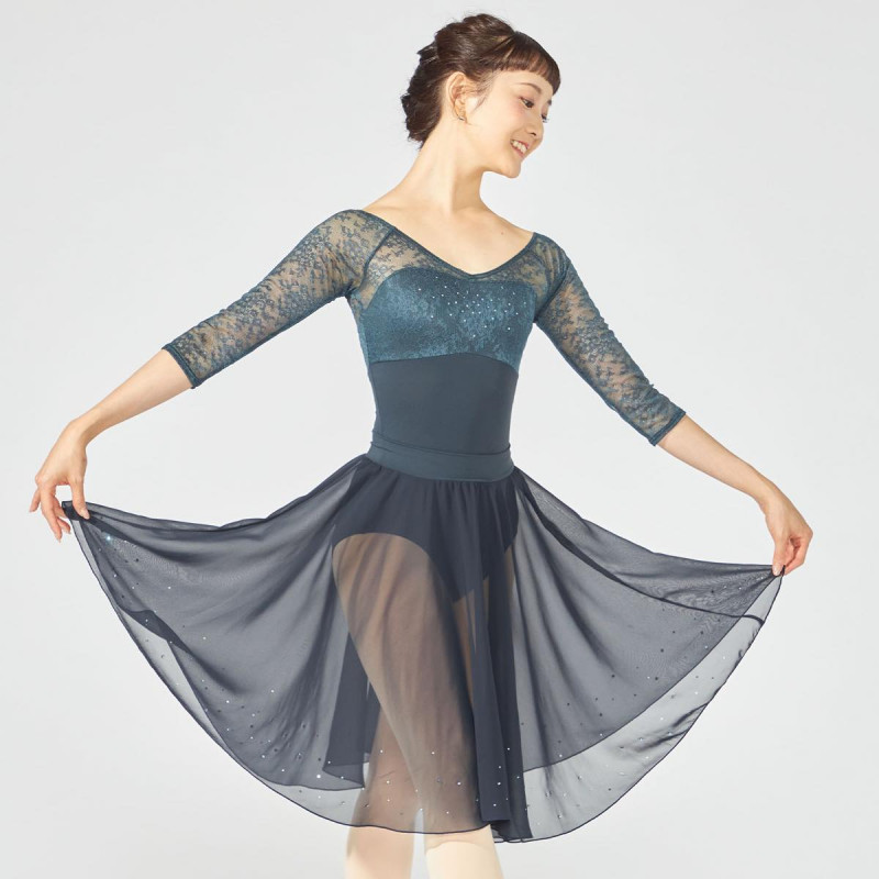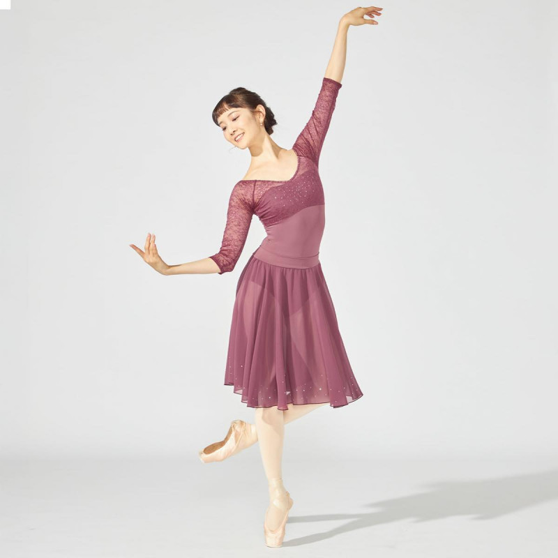 緩やかなVネックラインがデコルテを美しく見せるレオタード