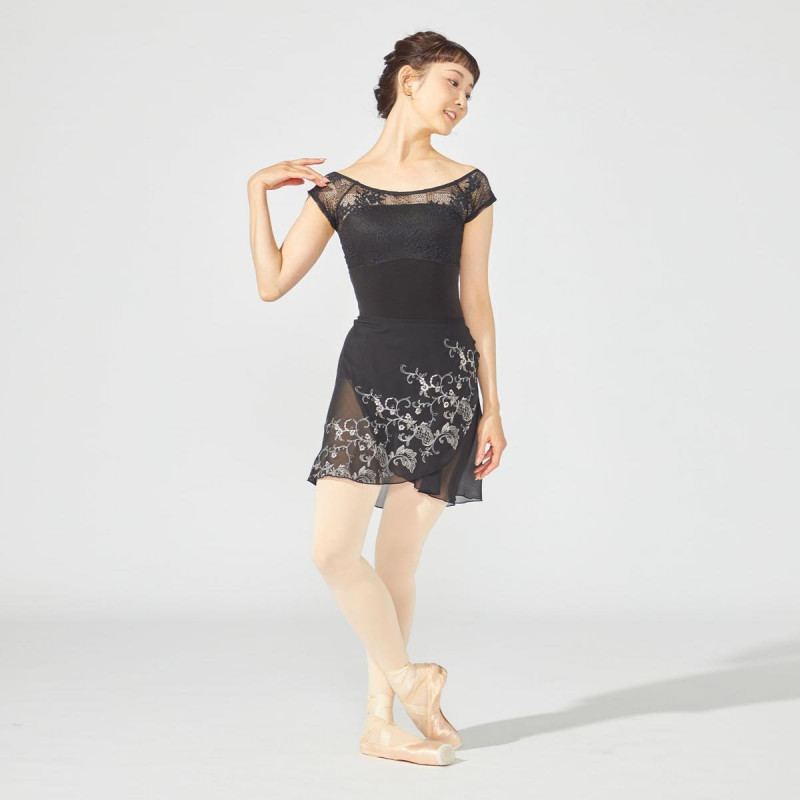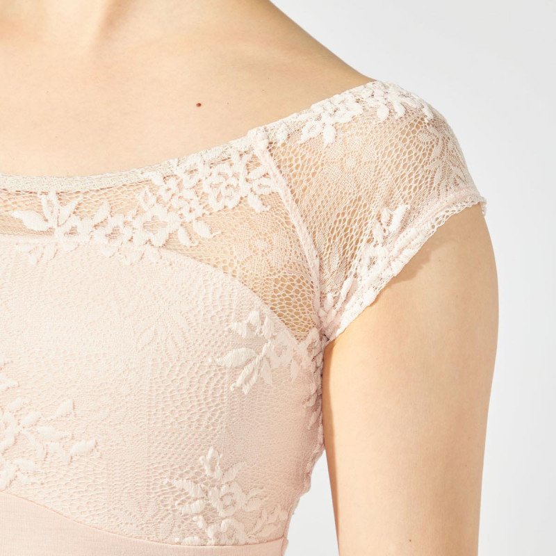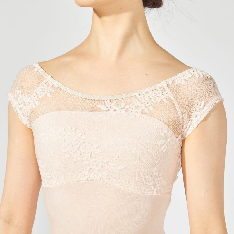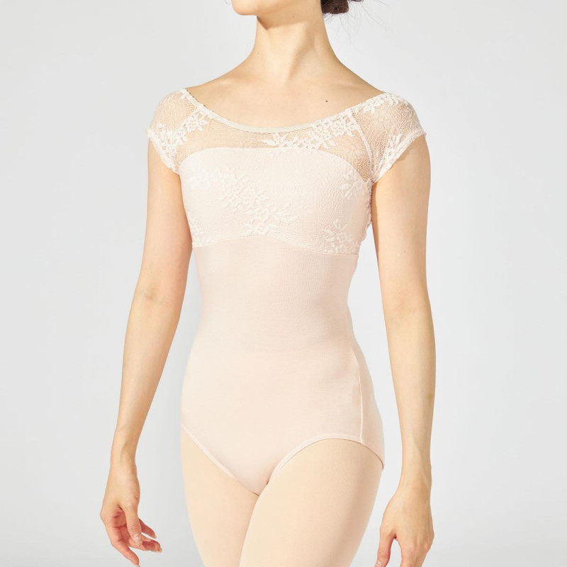 バストアップにストレッチレースを切り替えたフレンチスリーブレオタード