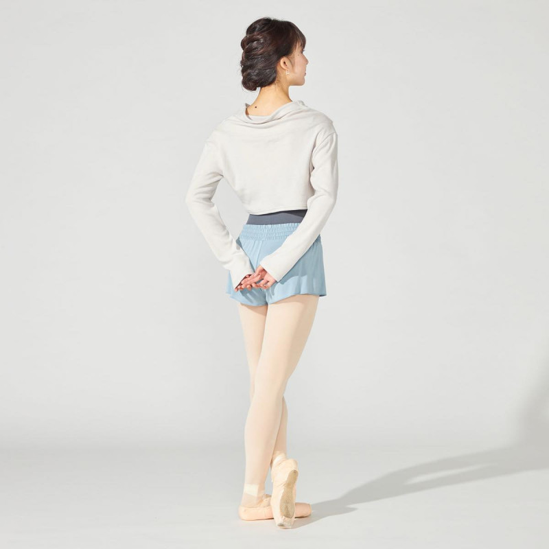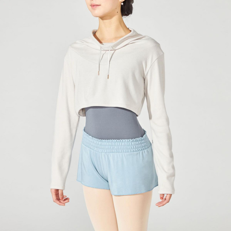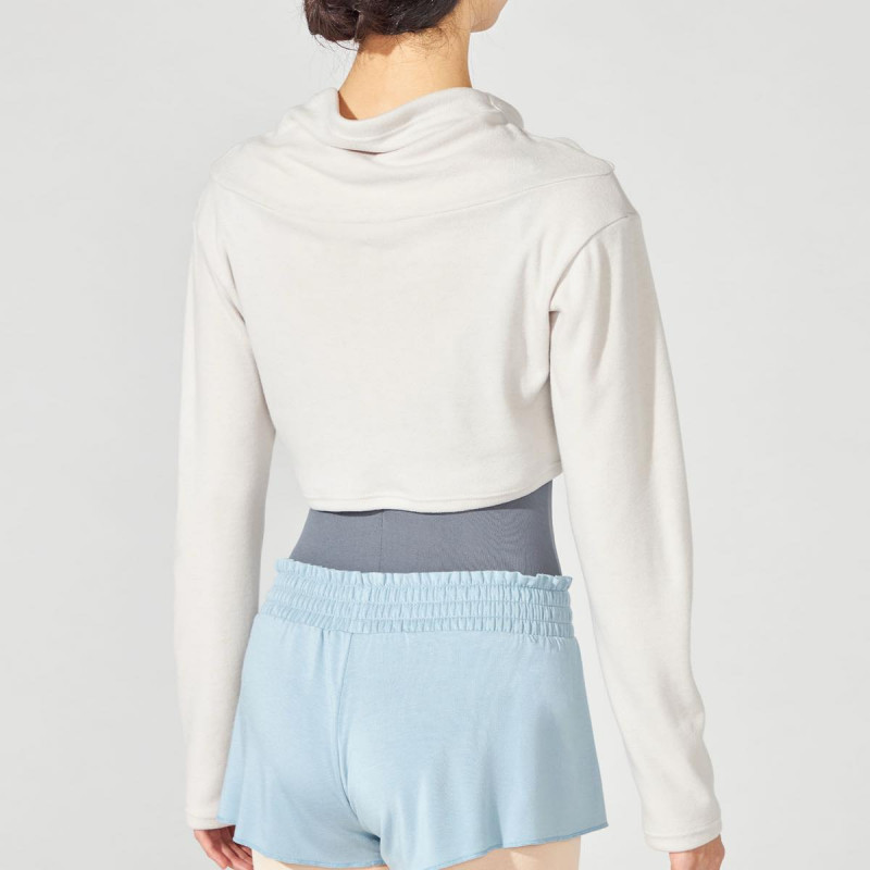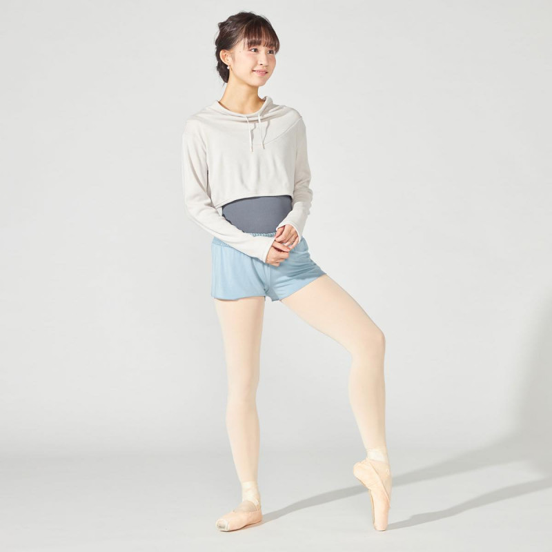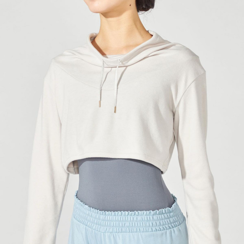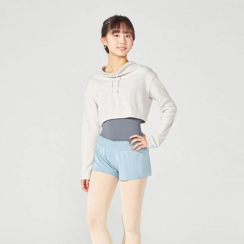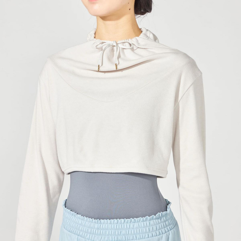 冬のレッスンでも快適に着用できるあたたかさを備えつつ、ゆとりのあるハイネックとショート丈のデザインで、シンプルながらファッション性のあるスタイルを演出。