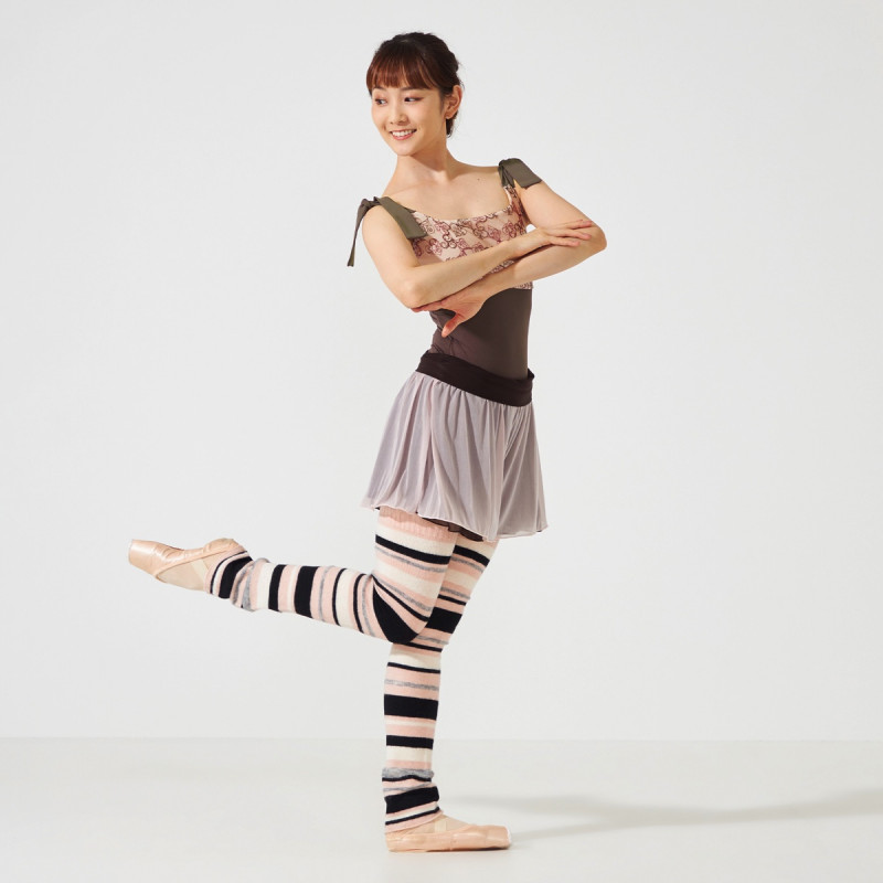 シンプルで使いやすいデザインのボーダー柄ニットレッグウォーマー