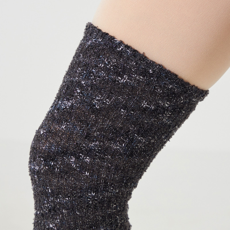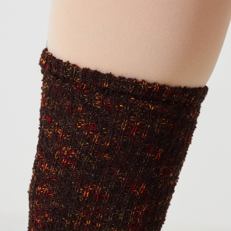 ラメ糸を混ぜたコーディネートのアクセントになるニットレッグウォーマー