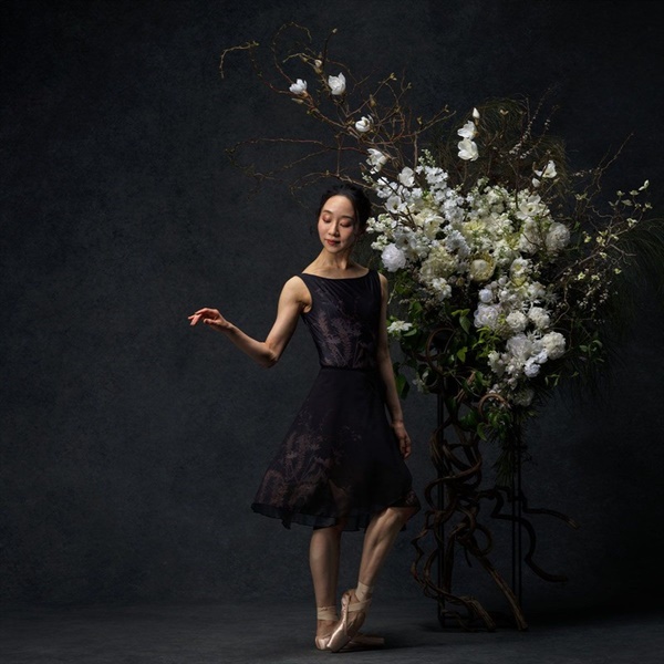 新国立劇場バレエ団プリンシパル、米沢唯さんのフラワーアートからイメージを膨らませたウェア。