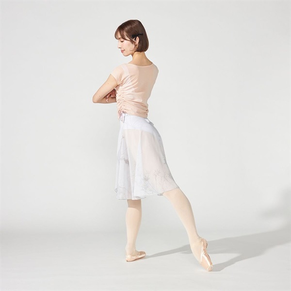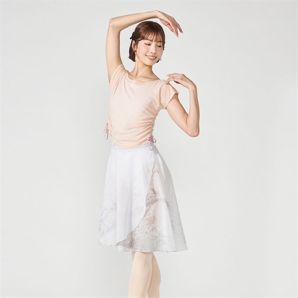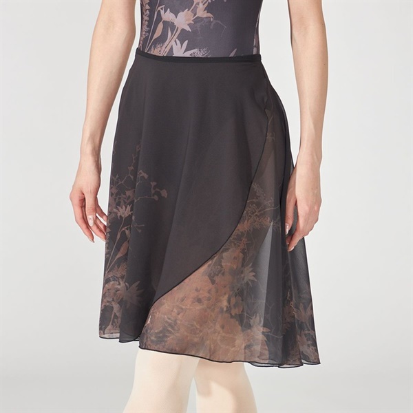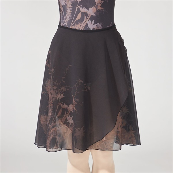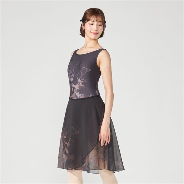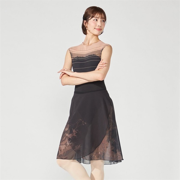 フラワーアートのイメージをプリントで表現した巻きスカート