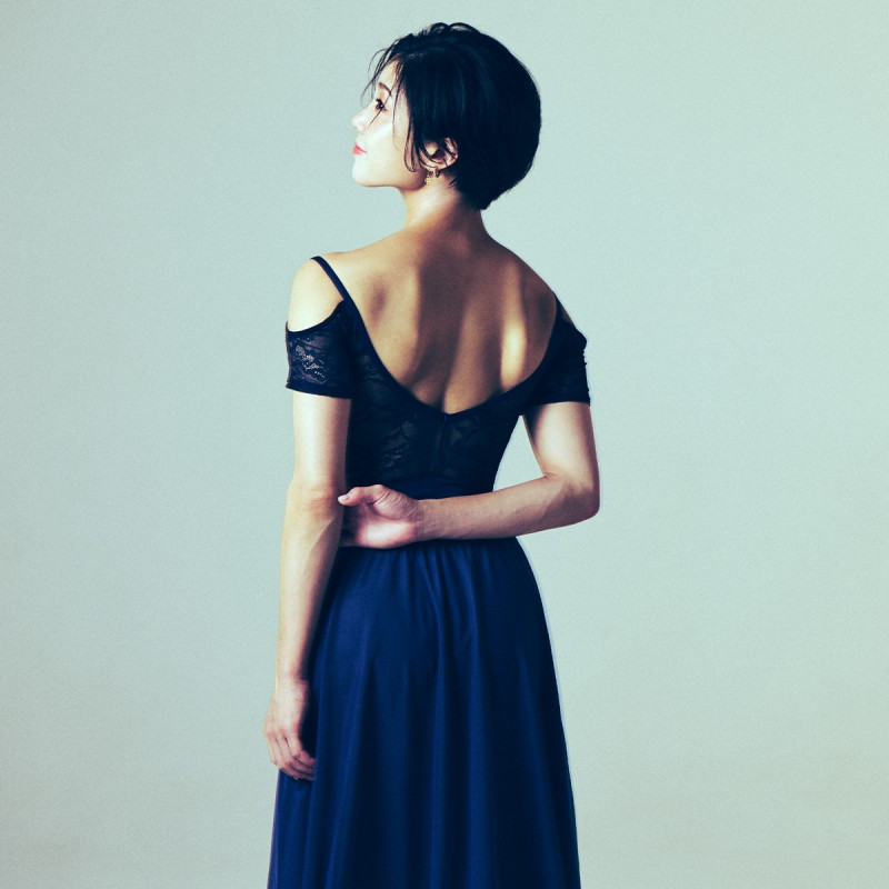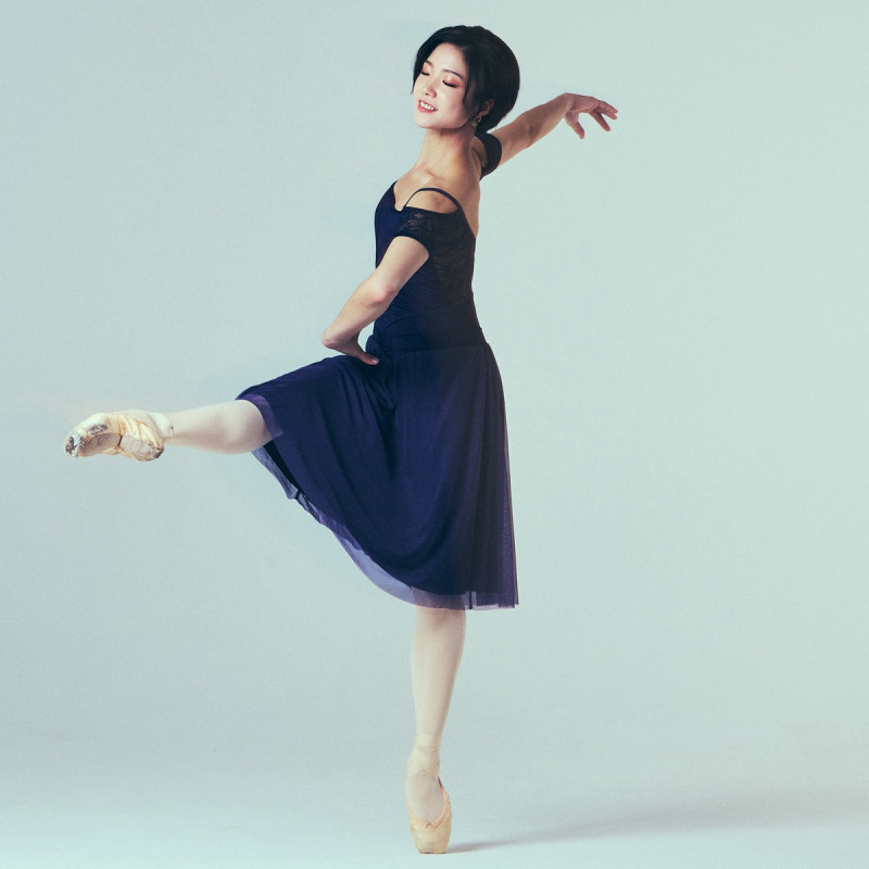 動きに合わせてふわりと揺れるチュールが、優雅なシルエットを演出。