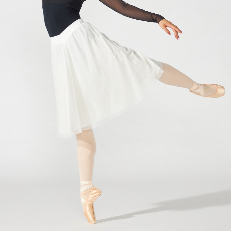 贅沢にチュールを使用したエレガントなミドルレングスのスカート