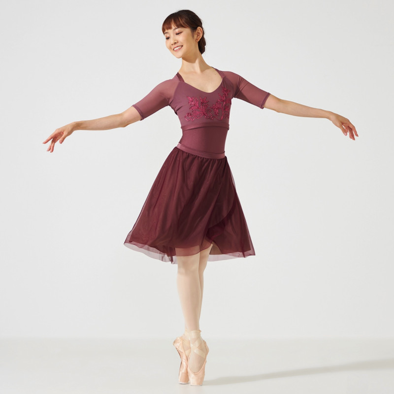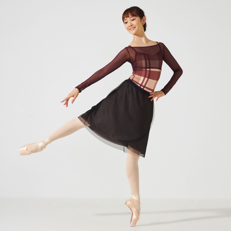 ●素材:チュール(ポリエステル100%)、ボディシェル(ポリエステル100%)、ウエスト部分-Sumatra(ナイロン80%、ポリウレタン20%)