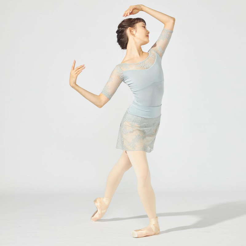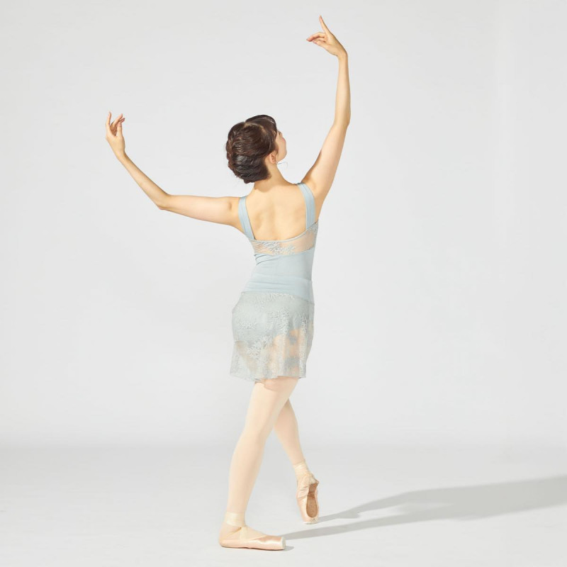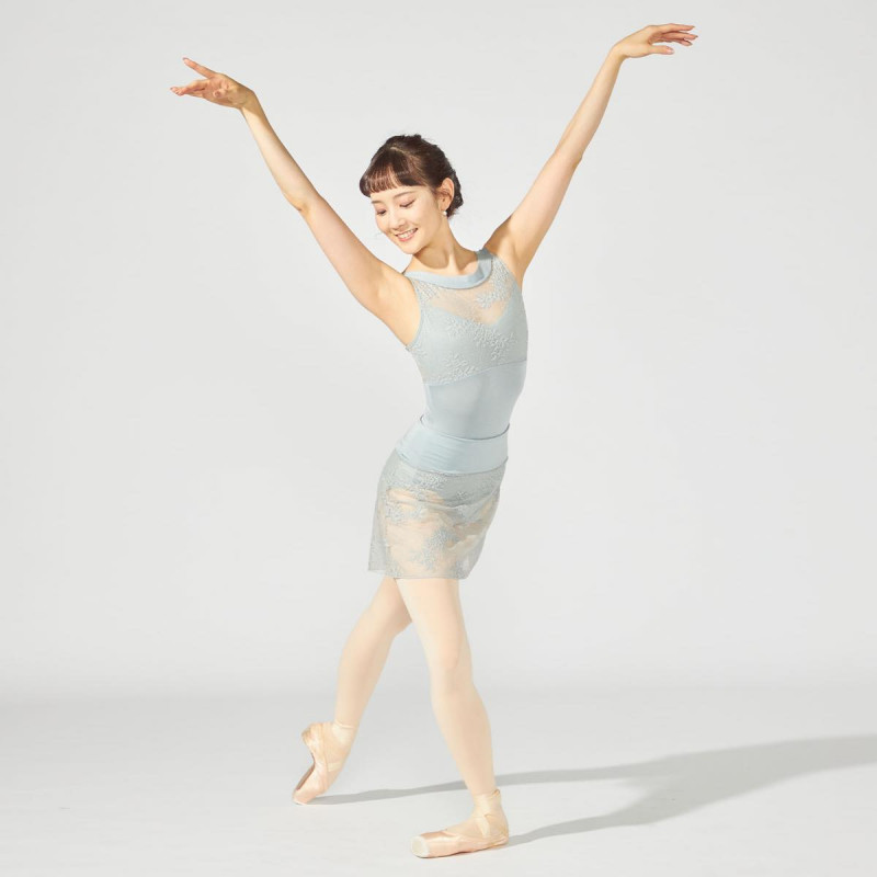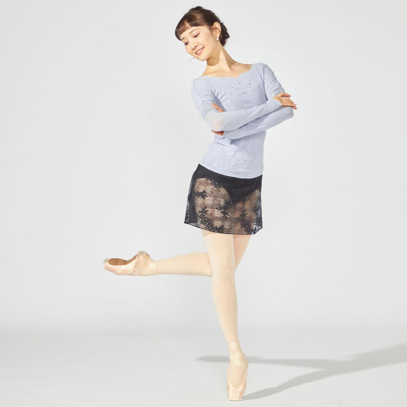 軽やかな透け感がレオタードとのコーディネートを引き立て上品な印象を添える。