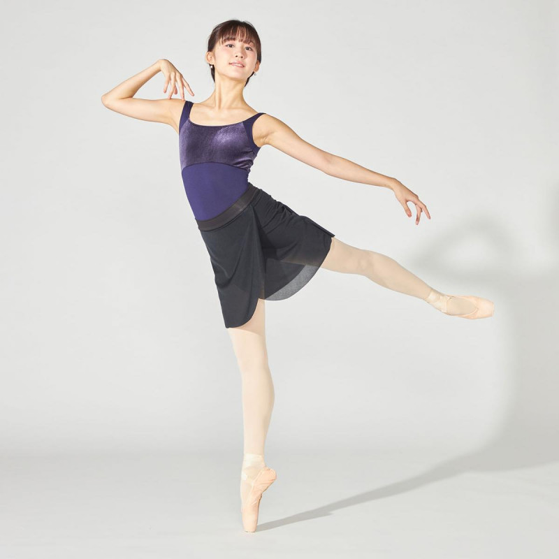ショートスパッツを内蔵した、前合わせタイプのスカート