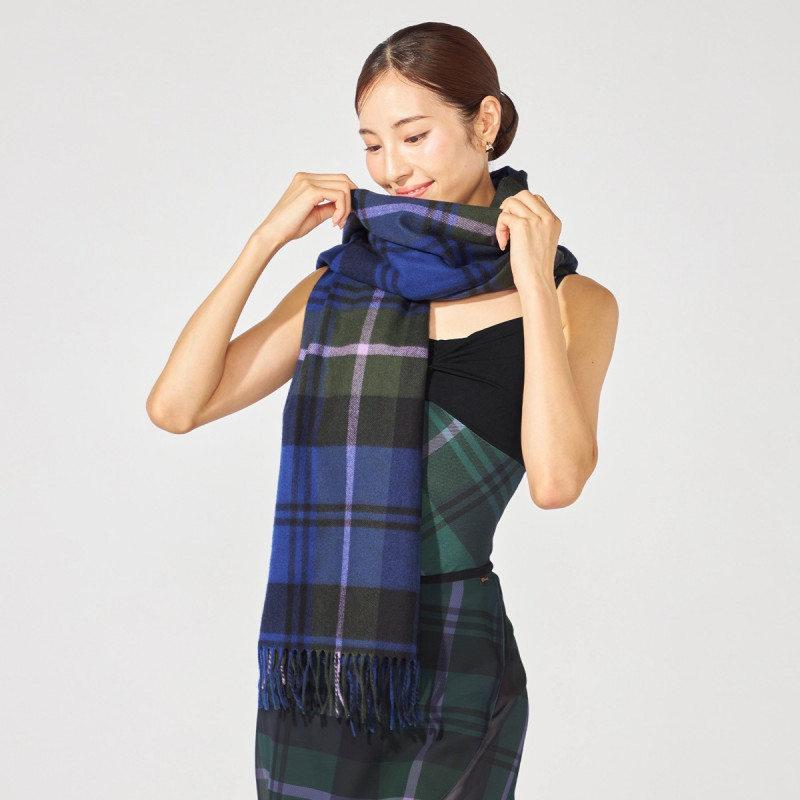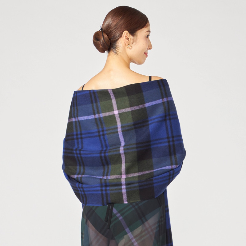 伝統的な「ドレスゴードン」※柄をベースに、柄の配置をあえてずらすことで新たな印象に仕上げたストール。