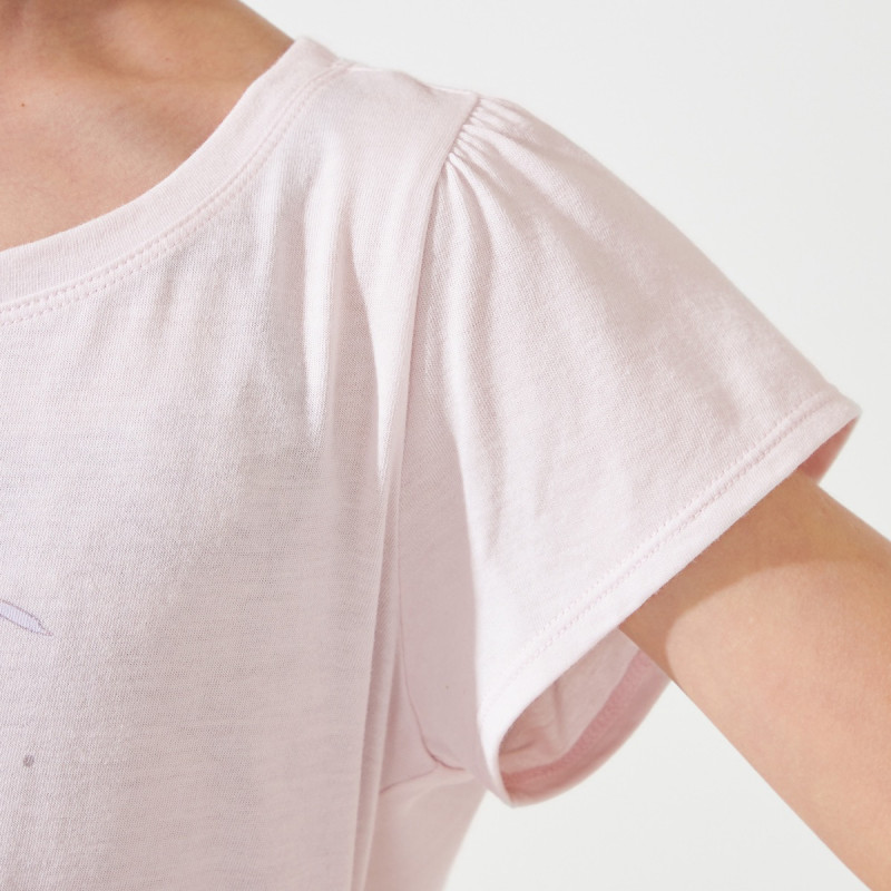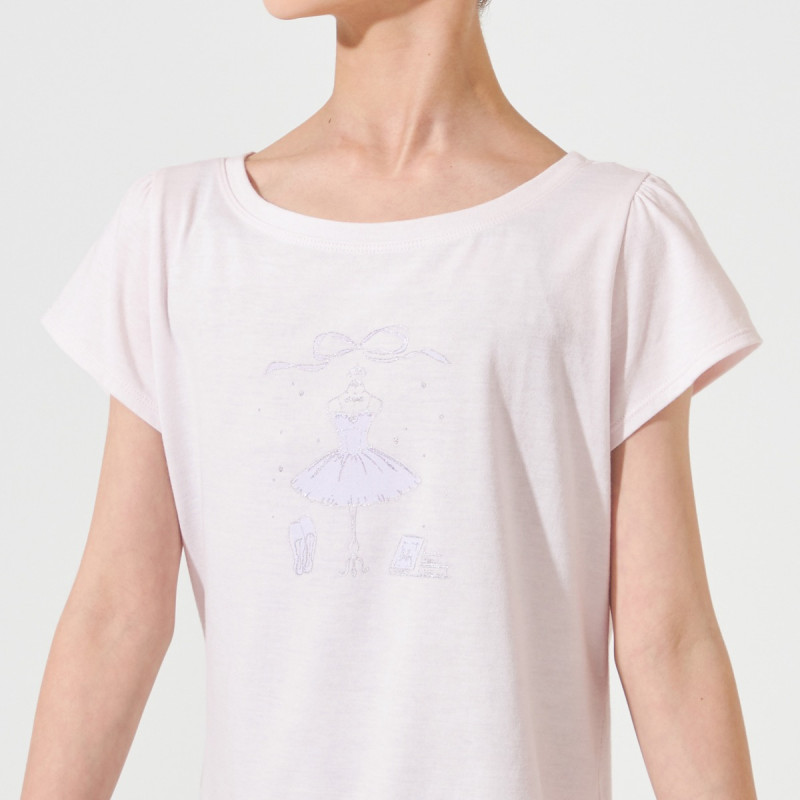 胸元にはキラキラのラメが入ったチュチュとトゥシューズのイラストを描いたキュートなデザイン。