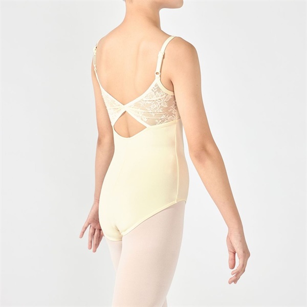 バックスタイルのリボン風ディテールがフェミニンなキャミソールレオタード