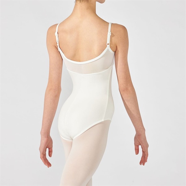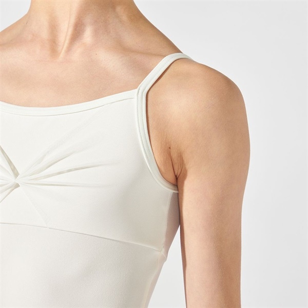 リボン風ディテールのチュールを載せたキャミソールレオタード
